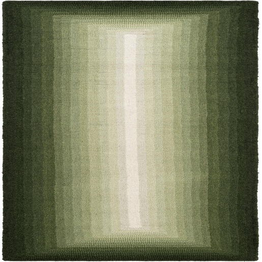 8 Ft runner rug with a modern ombre pattern, transitioning from dark green edges to a light green center stripe.