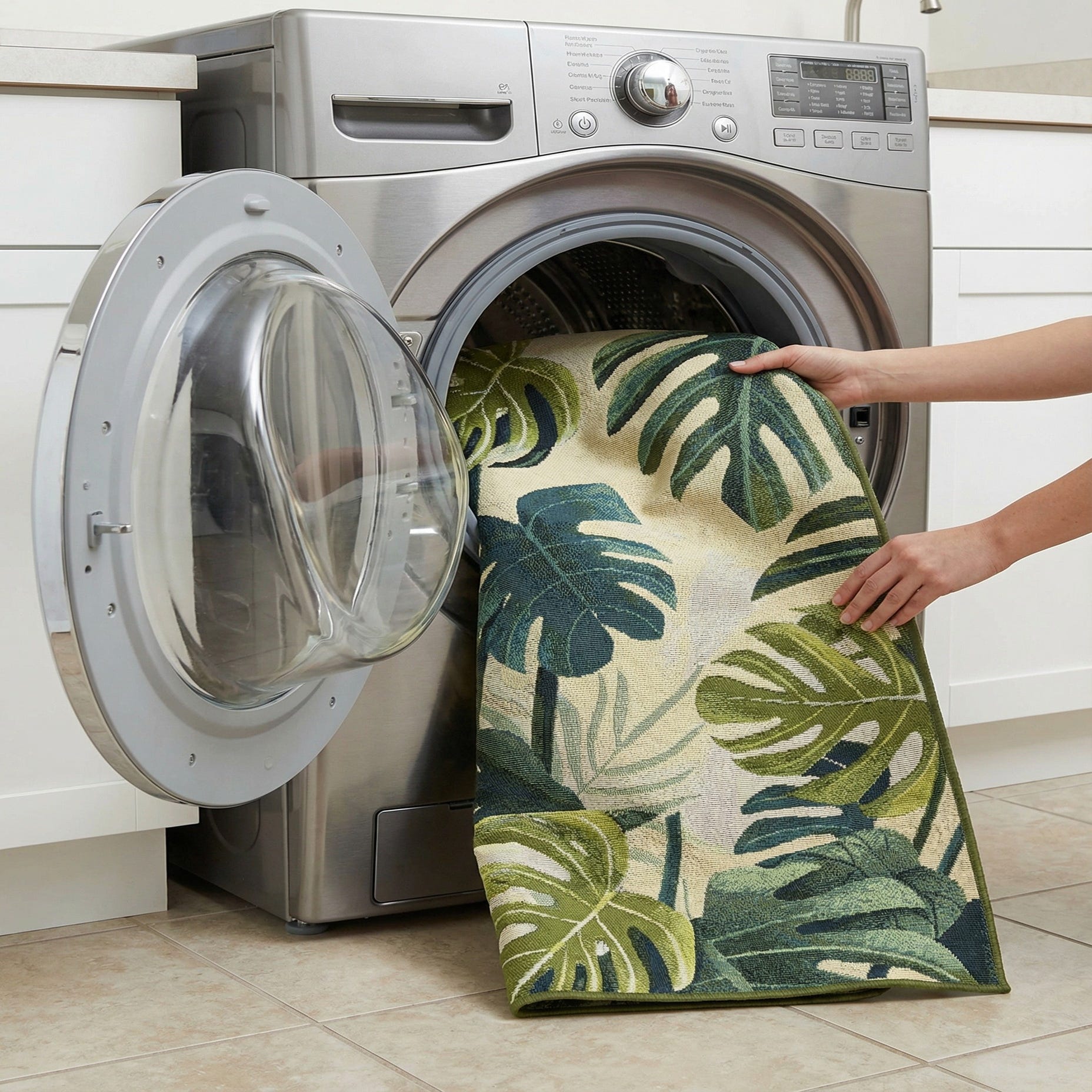This runner works well in a sunlit entryway, a covered porch or along a kitchen aisle where a touch of greenery helps anchor natural furnishings. Pair it with rattan seating, woven textiles and warm wood tones for a tropical-inspired look, or use it to add color against crisp white trim and navy accents in a coastal or contemporary scheme.