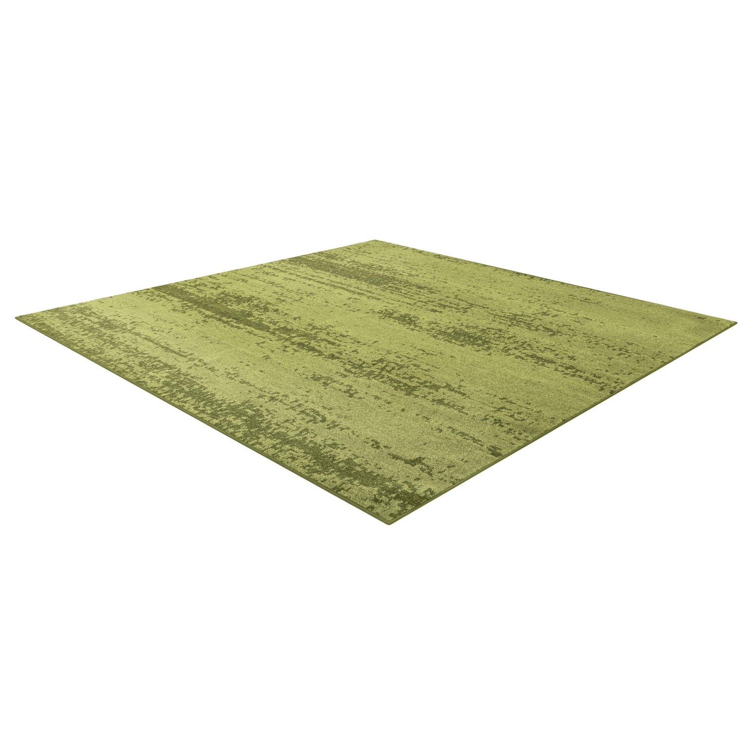 A 7' 10 x 7' 10 square green area rug featuring a contemporary, textured solid pattern with varying shades of green, ideal for an indoor space.