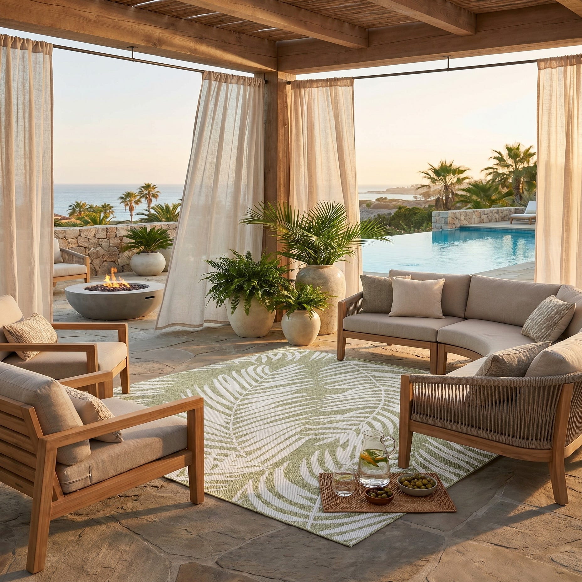 This rug is perfect for our back patio … now it really feels like an outdoor living room. We live near the beach so this was the perfect compliment to our beach/city backyard. It was expertly rolled up and after a couple of days all of the creases were relaxed and we couldn't love it more!