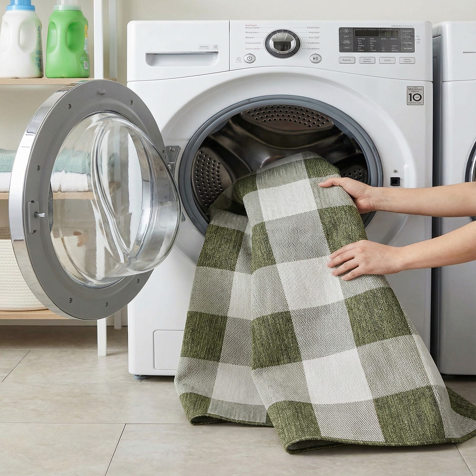7' 10 x 7' 10 Washable Checkered Indoor / Outdoor Square Rug