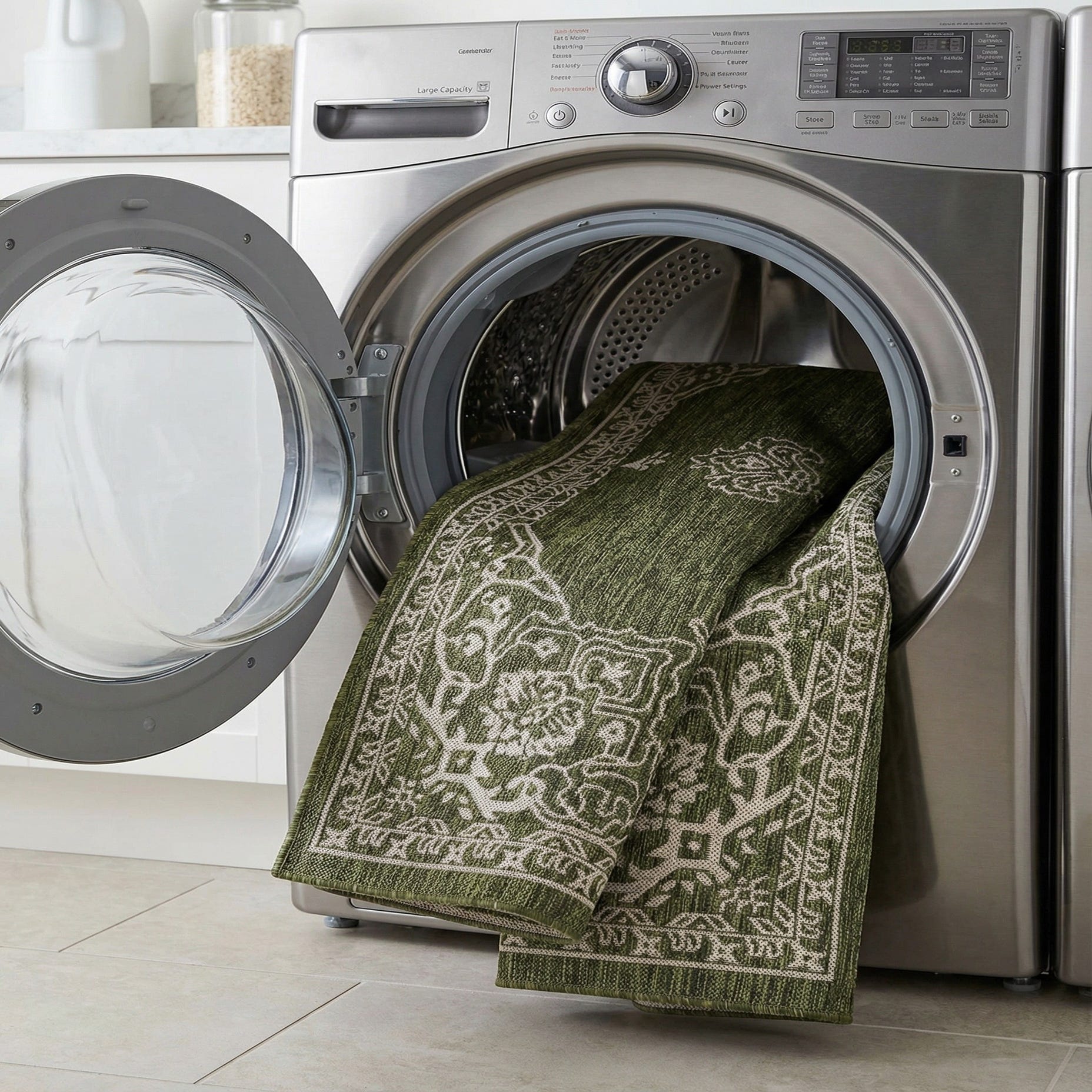 Detail image of  7' 10 x 7' 10  Washable Traditional Indoor / Outdoor Square Rug
