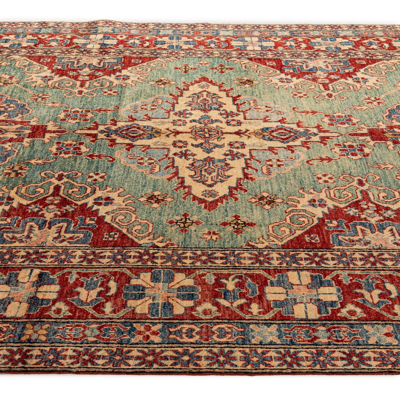 Rugs.com Kazak 8x10 rectangular wool rug featuring a traditional Oriental medallion pattern in shades of green, red, and blue.