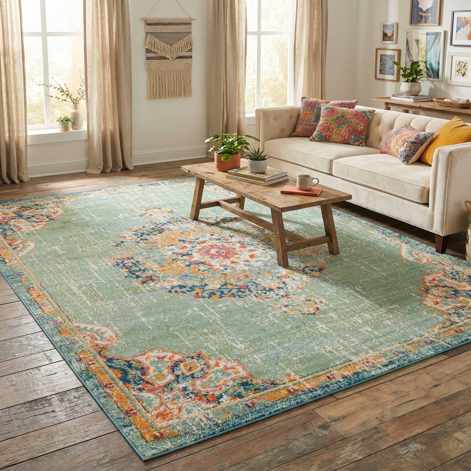 The balanced colorway and transitional, vintage-inspired styling make this piece versatile for a range of rooms. Use it to anchor a living room seating area over hardwood, warm up a bedroom beneath the bed, or define a casual dining space. It pairs naturally with light wood furniture, linen upholstery, rattan accents or navy and coral textiles, and works equally well in relaxed coastal, cottage, or contemporary-traditional interiors.