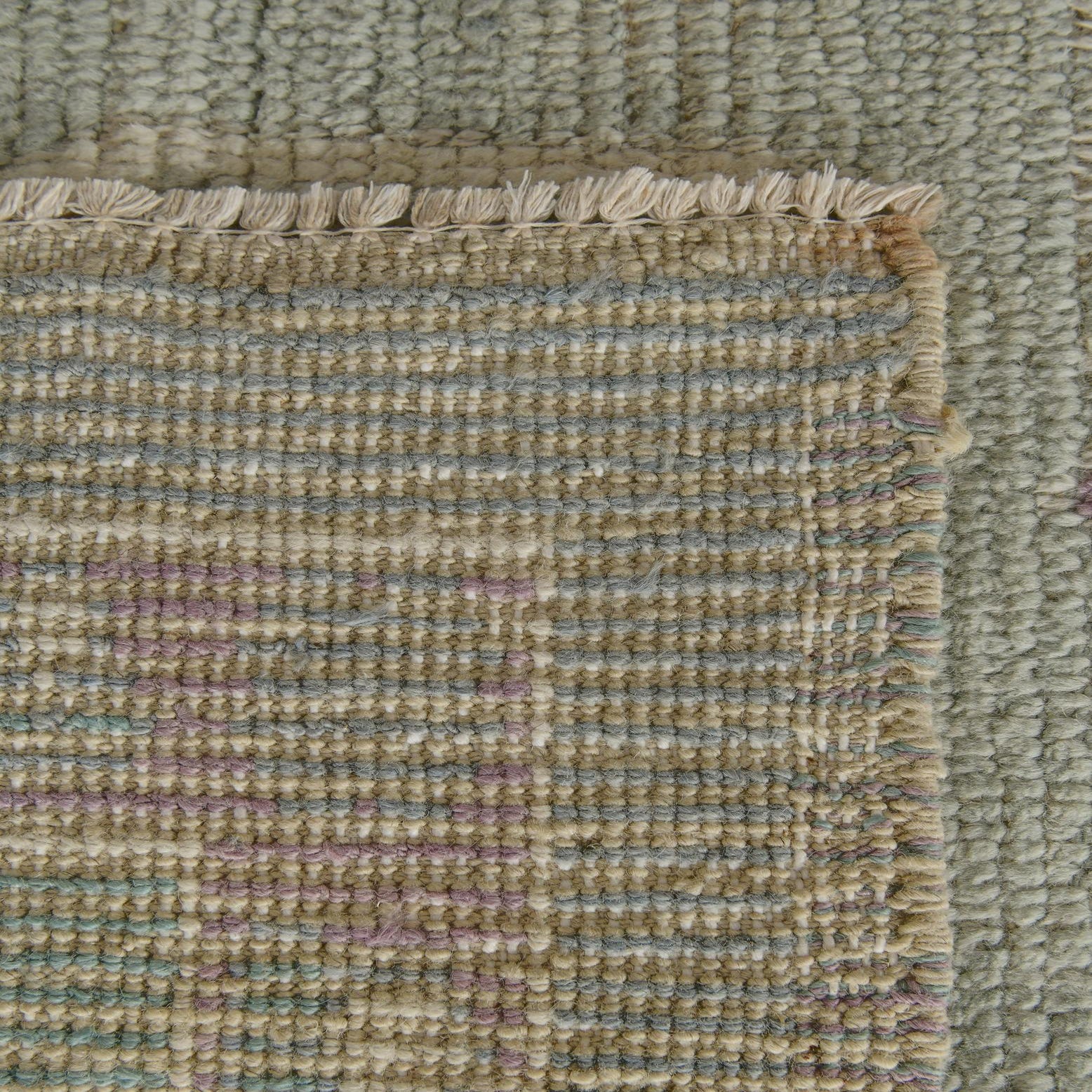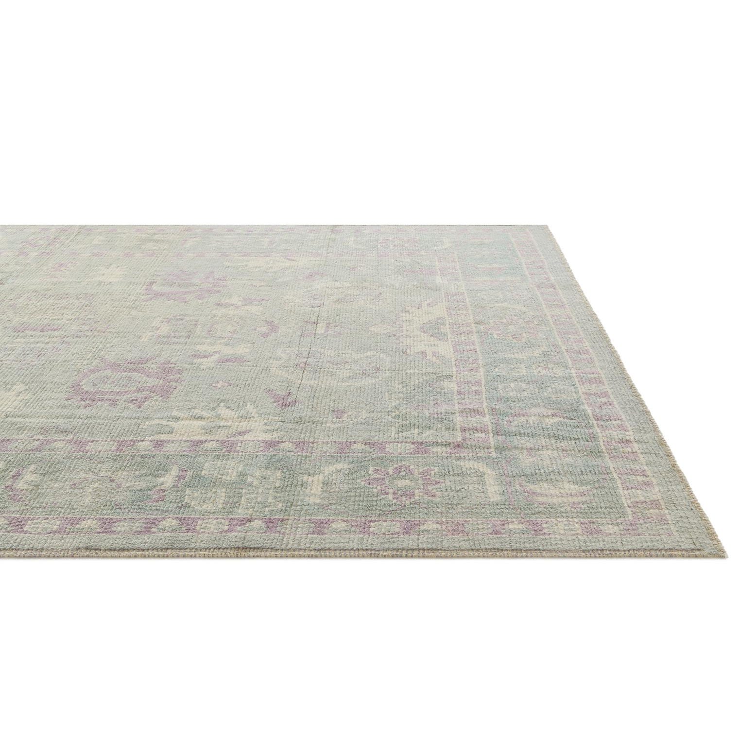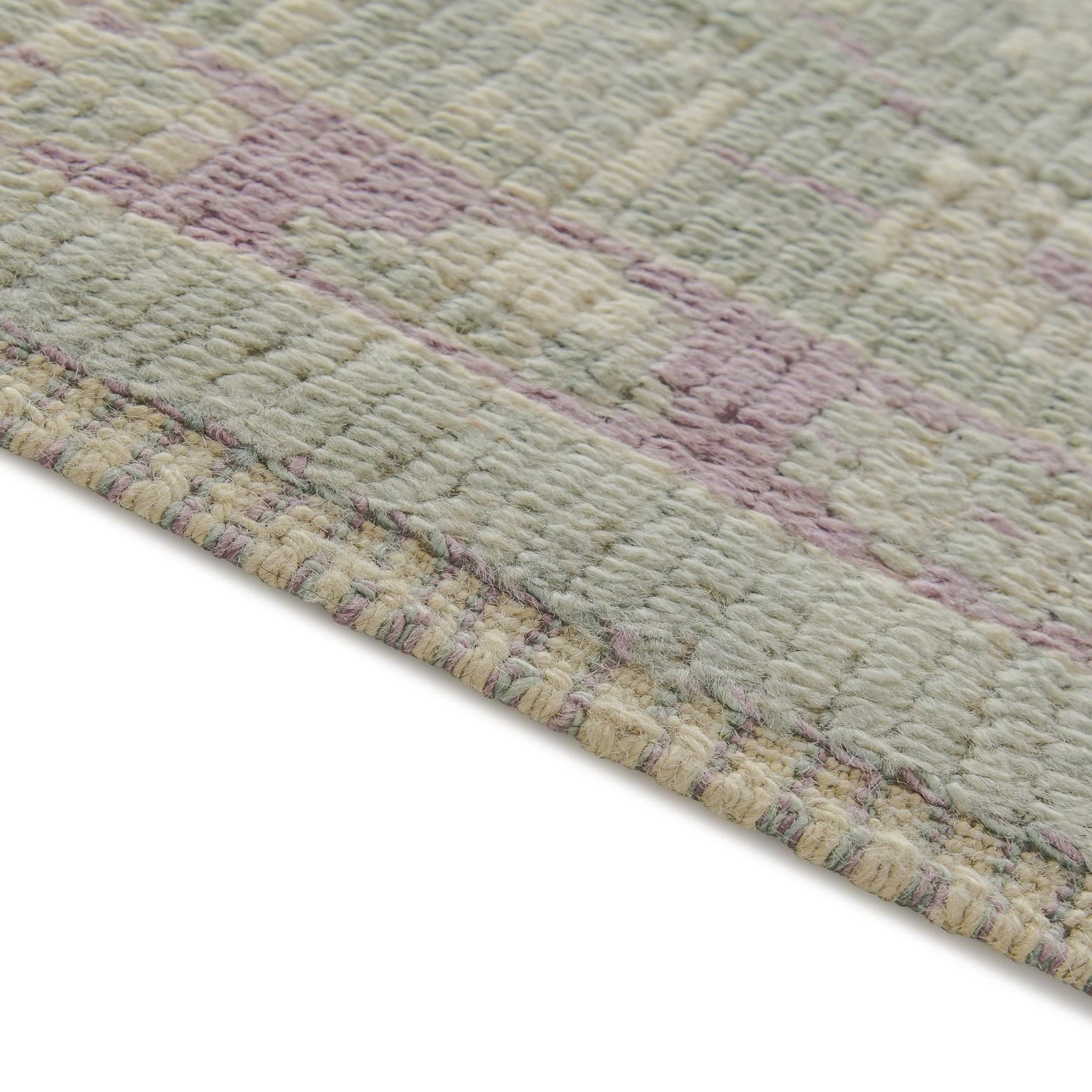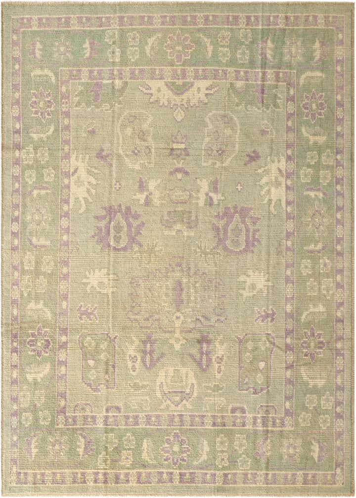 Primary color is Green. Colors in this rug include: Green, Ivory, Violet.