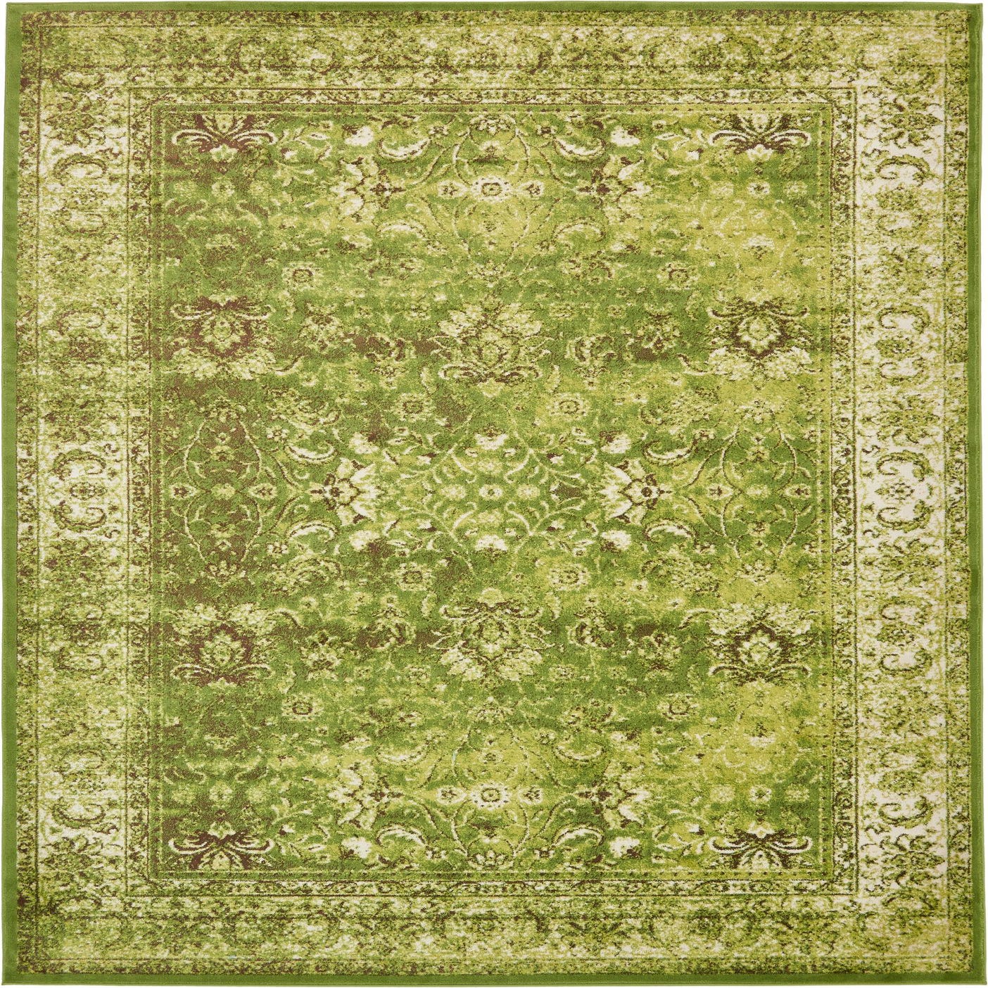 Primary color is Green. Colors in this rug include: Green, Brown, Light Green, Ivory.