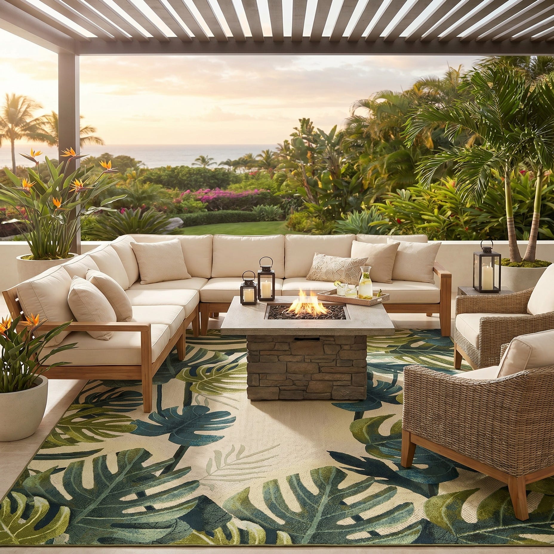 • Sand beige outdoor sectional with performance fabric