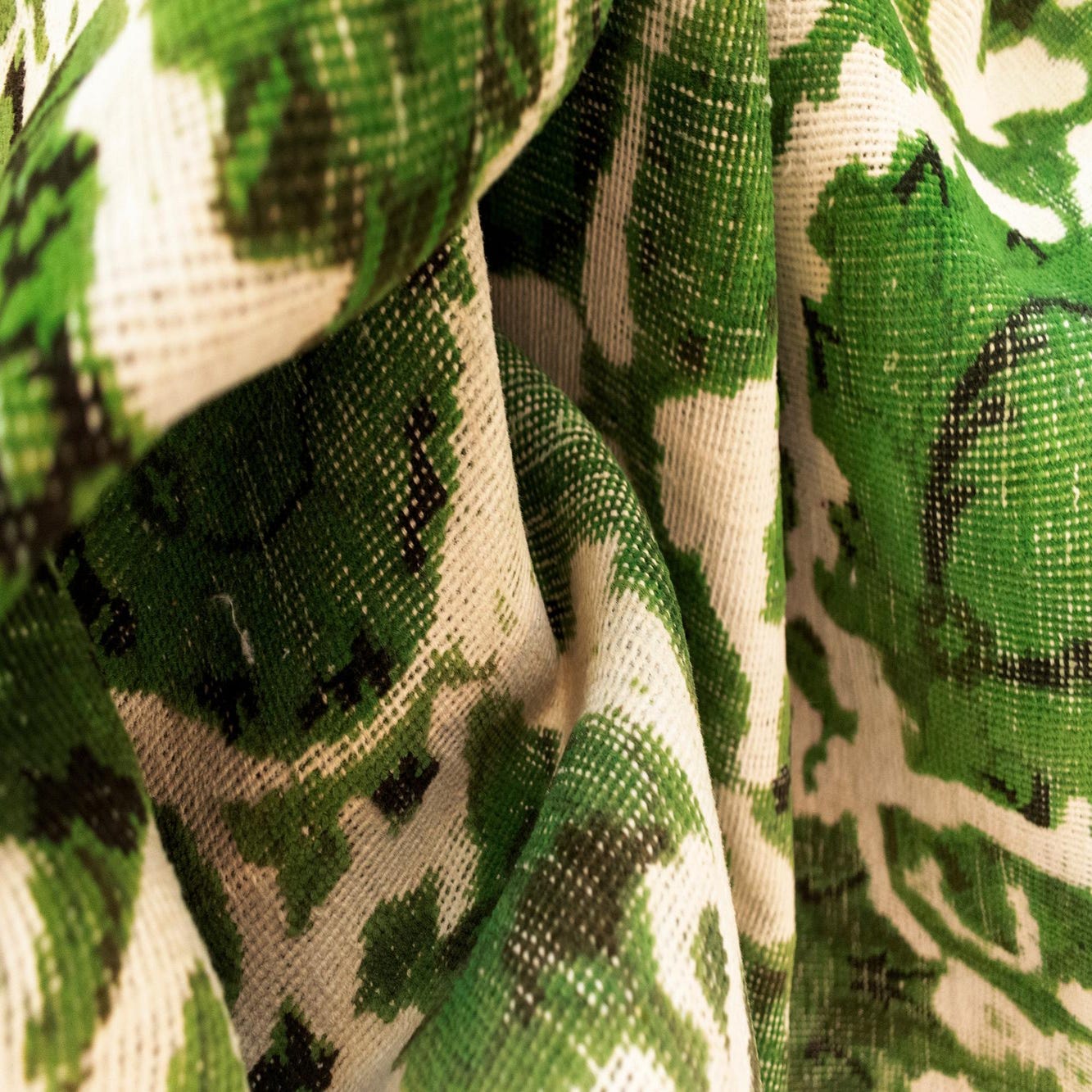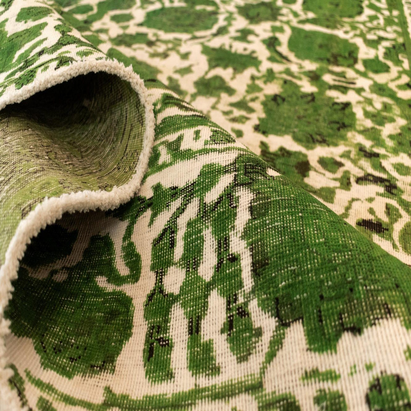 A rectangular 8x11 green Persian wool rug with an intricate floral pattern and a detailed border.