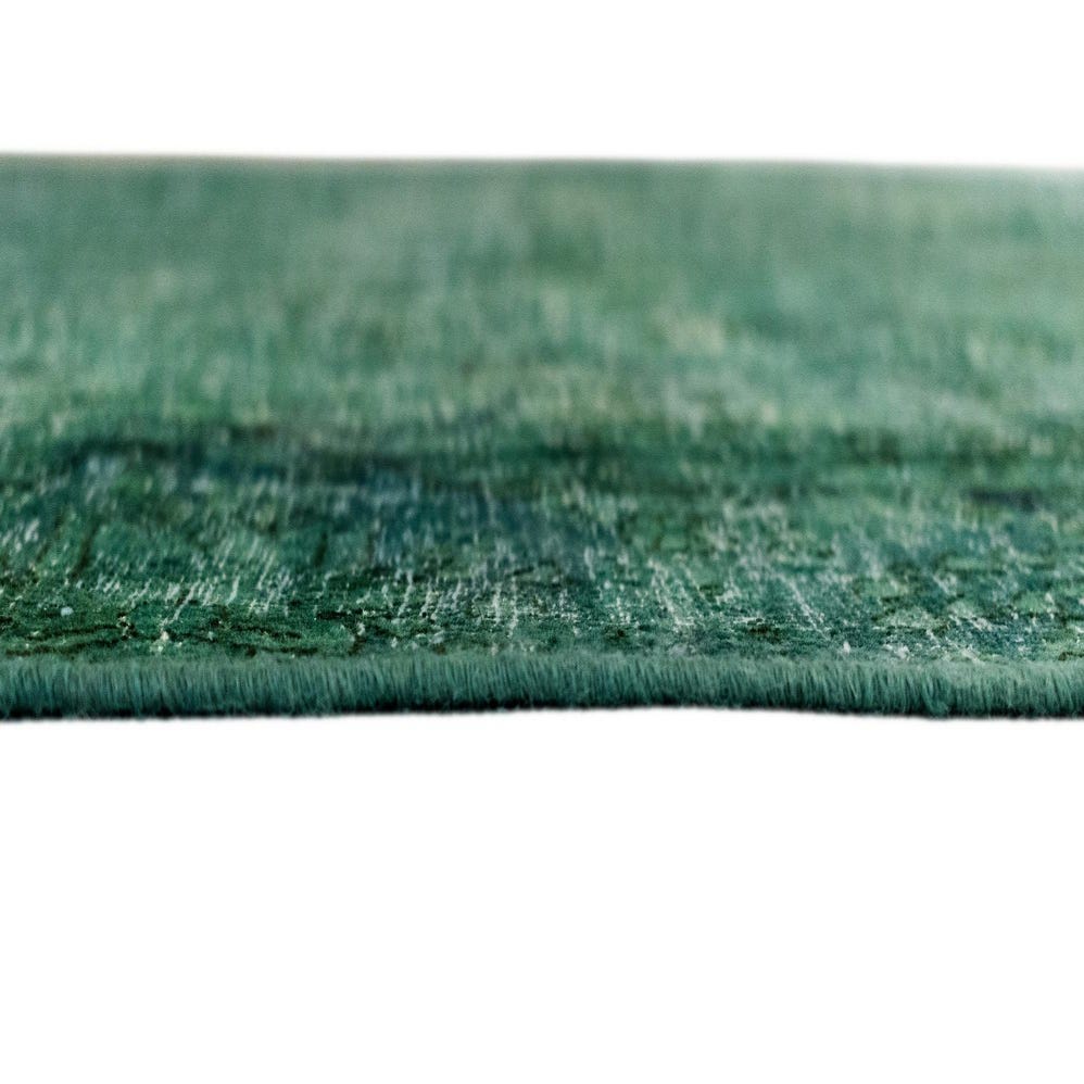 The Vintage Royal collection presents an 8x11 hand-made rug, crafted with 100% wool that presents a rich texture underfoot. This piece showcases a predominantly green background, imbued with subtle variations in hue that suggest a piece with depth and history. The pattern is understated, with faded traditional motifs that hint at the classic designs reimagined for contemporary living.