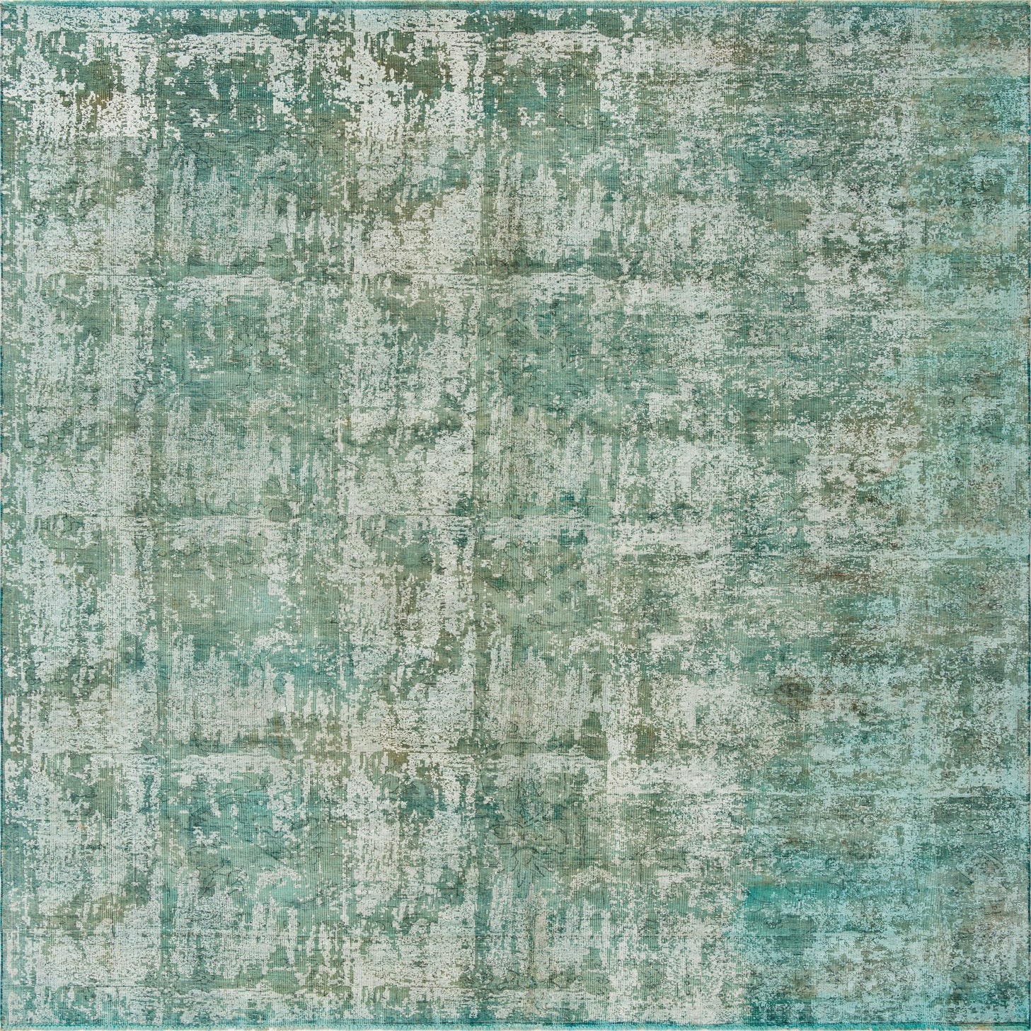 A 9x12 rectangular Ultra Vintage rug in shades of green with a distressed, faded Persian pattern, suitable for a living room.