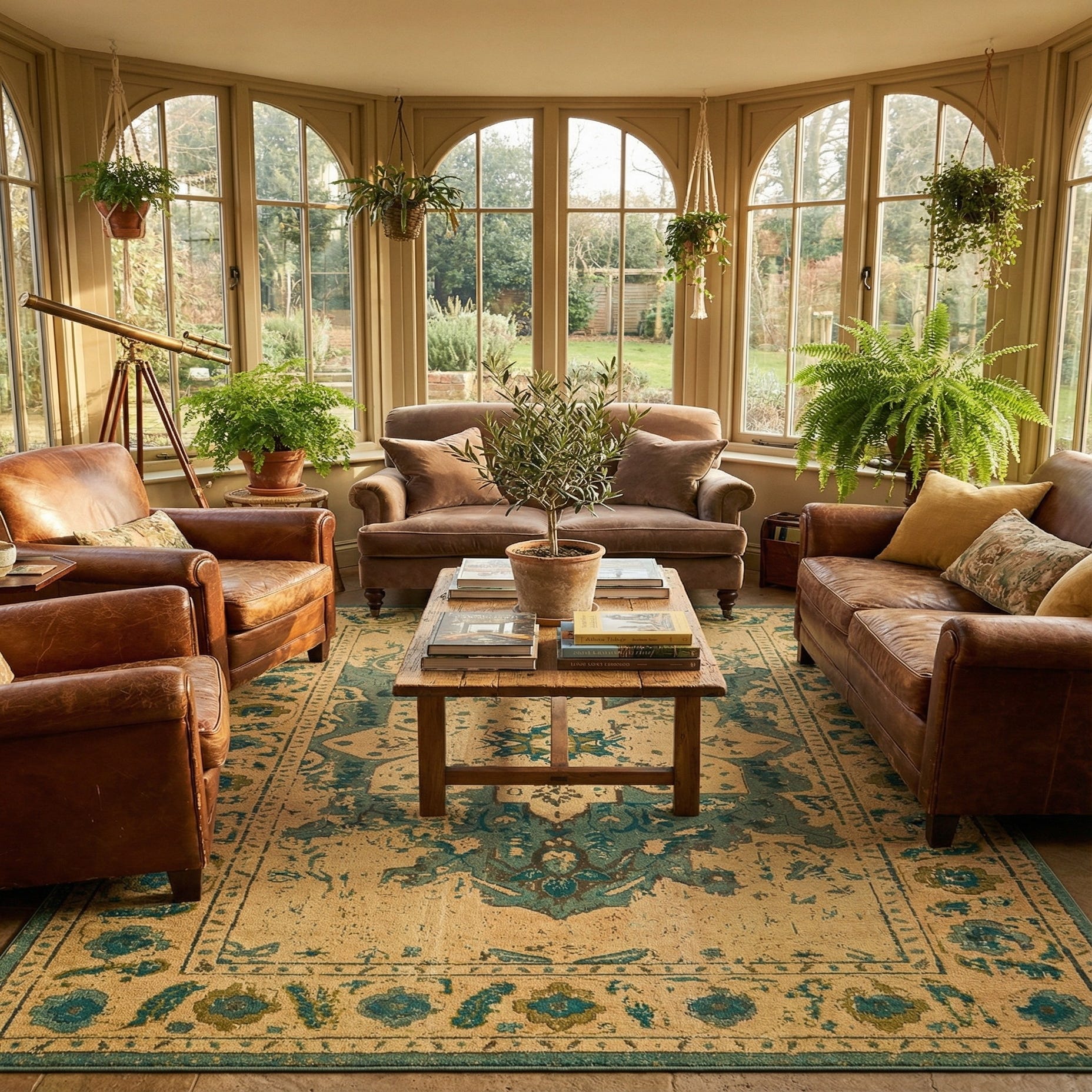 This Palace Rugs piece pairs naturally with warm wood tones, rattan or wicker furnishings and brass or muted metal accents for a relaxed, collected feel. Use it under a coffee table in a casual living room, as an anchor for a dining area with linen-upholstered chairs, or in a home office to soften harder surfaces and introduce color without overwhelming the palette. The mix of green, blue and gold offers a versatile foundation for both transitional and eclectic interiors.