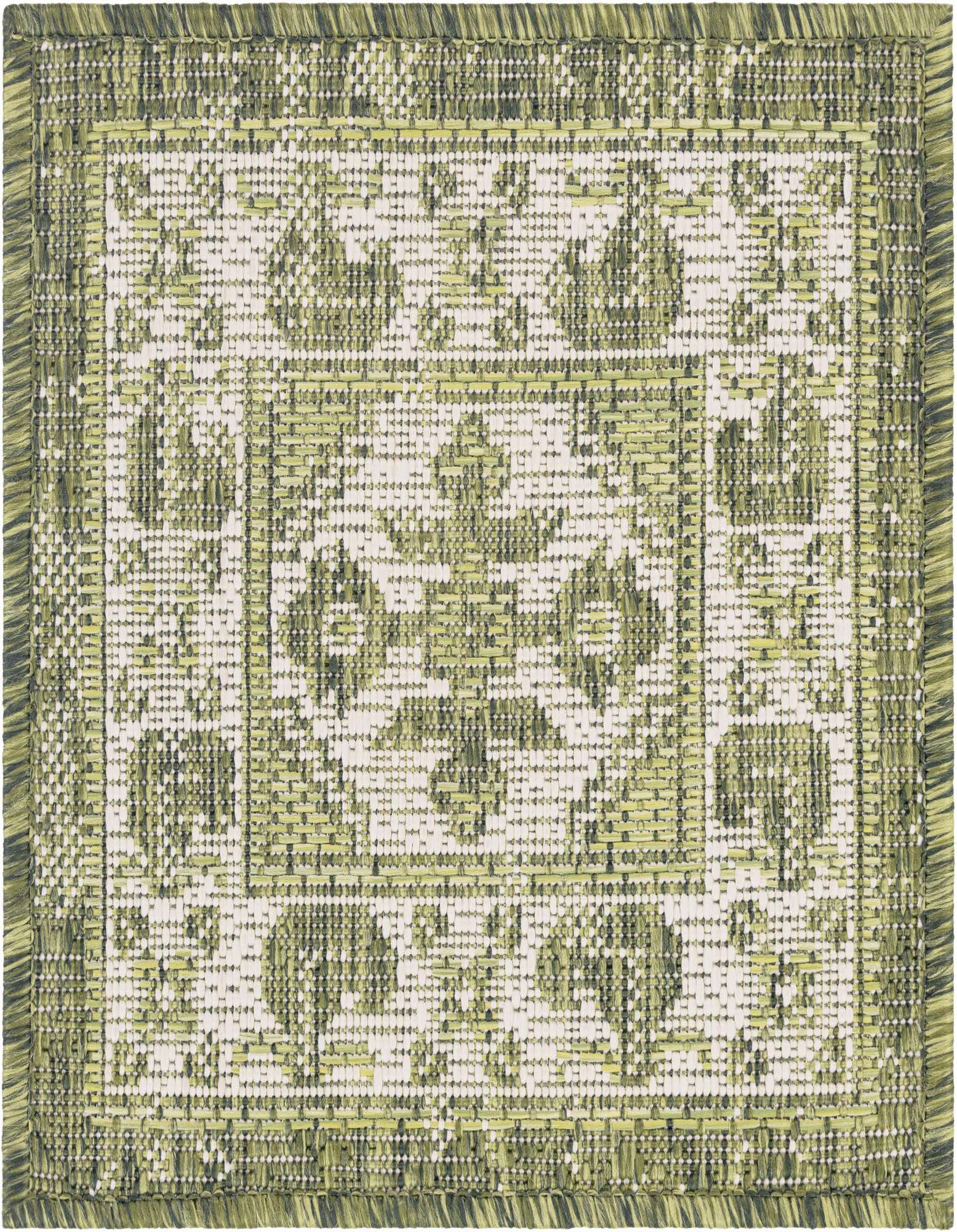 Primary color is Green. Colors in this rug include: Green, Ivory, Light Green.