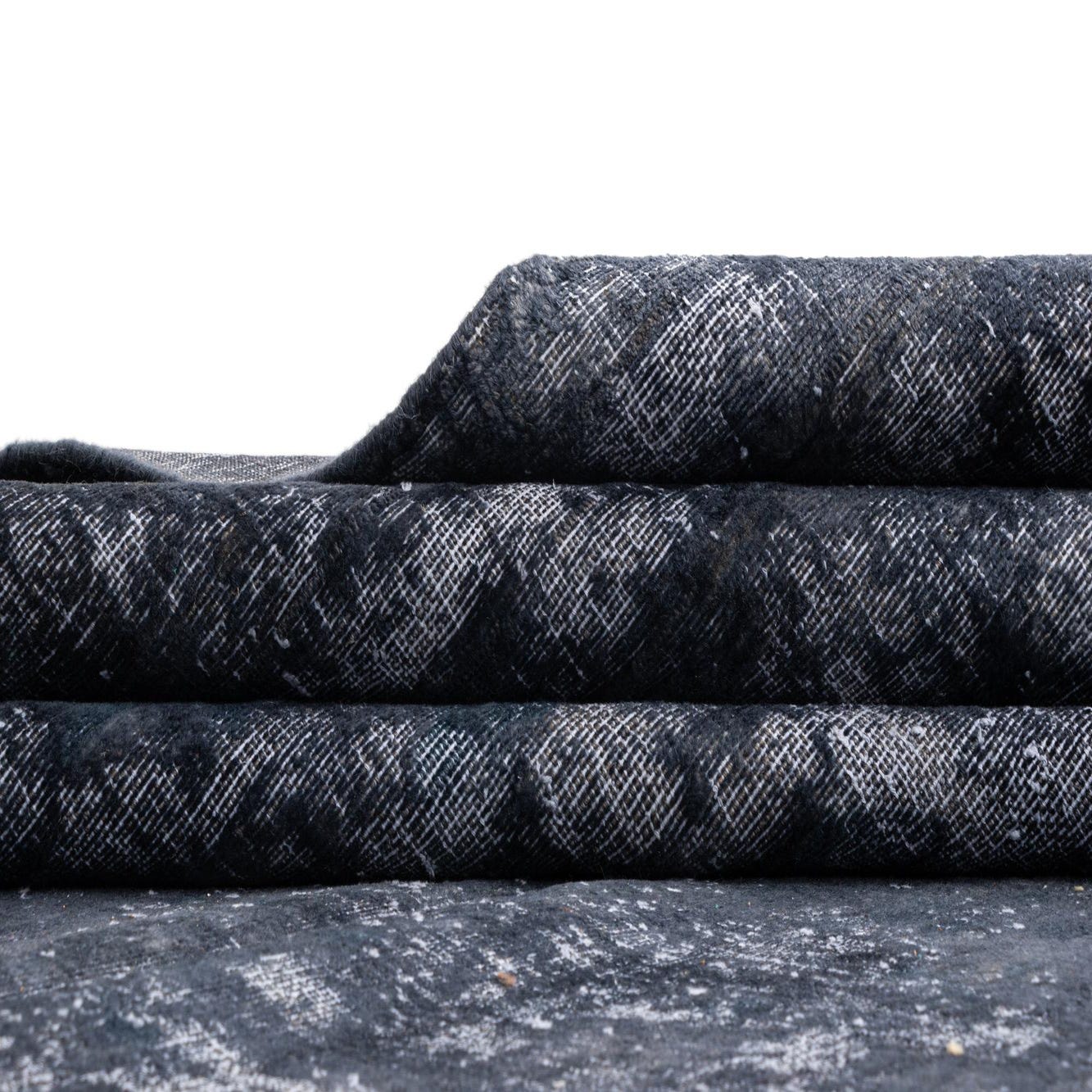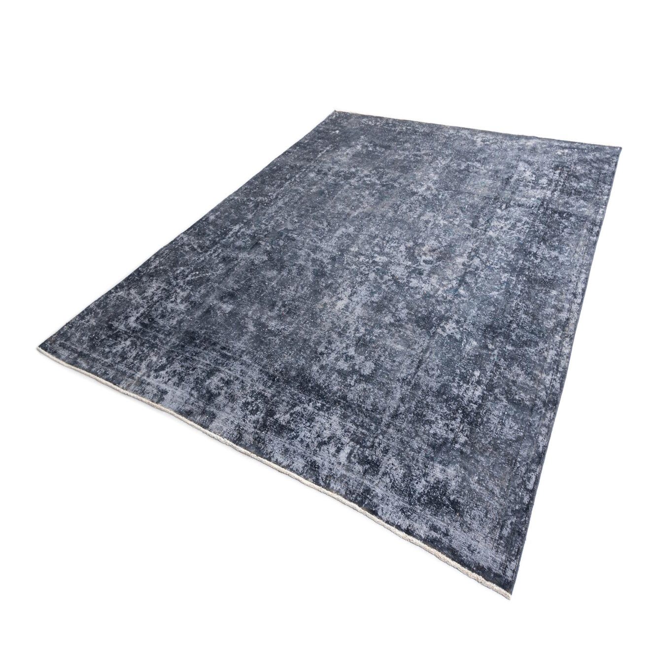 A 10x12 rectangular grey Persian wool rug with a distressed, vintage-inspired pattern, suitable for an indoor living space.