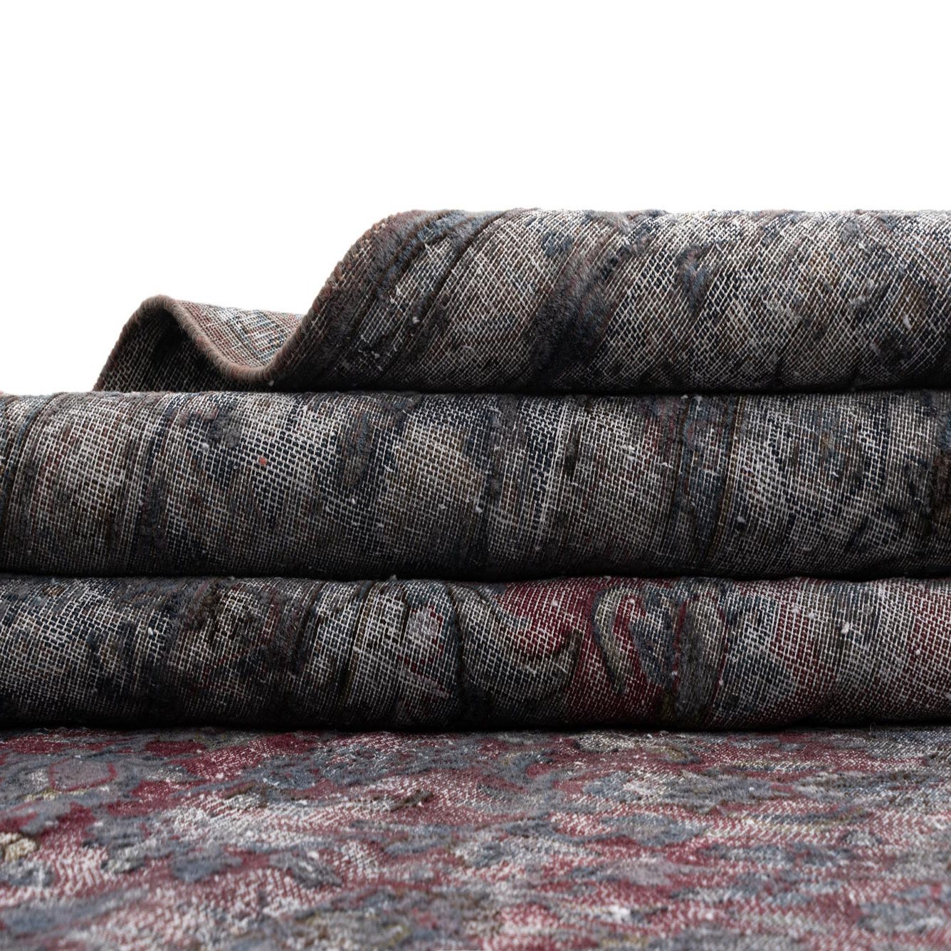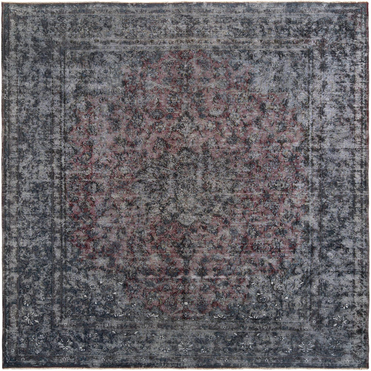 A 10x13 rectangular Rugs.com Vintage Royal Persian rug in distressed grey with a faded red medallion.