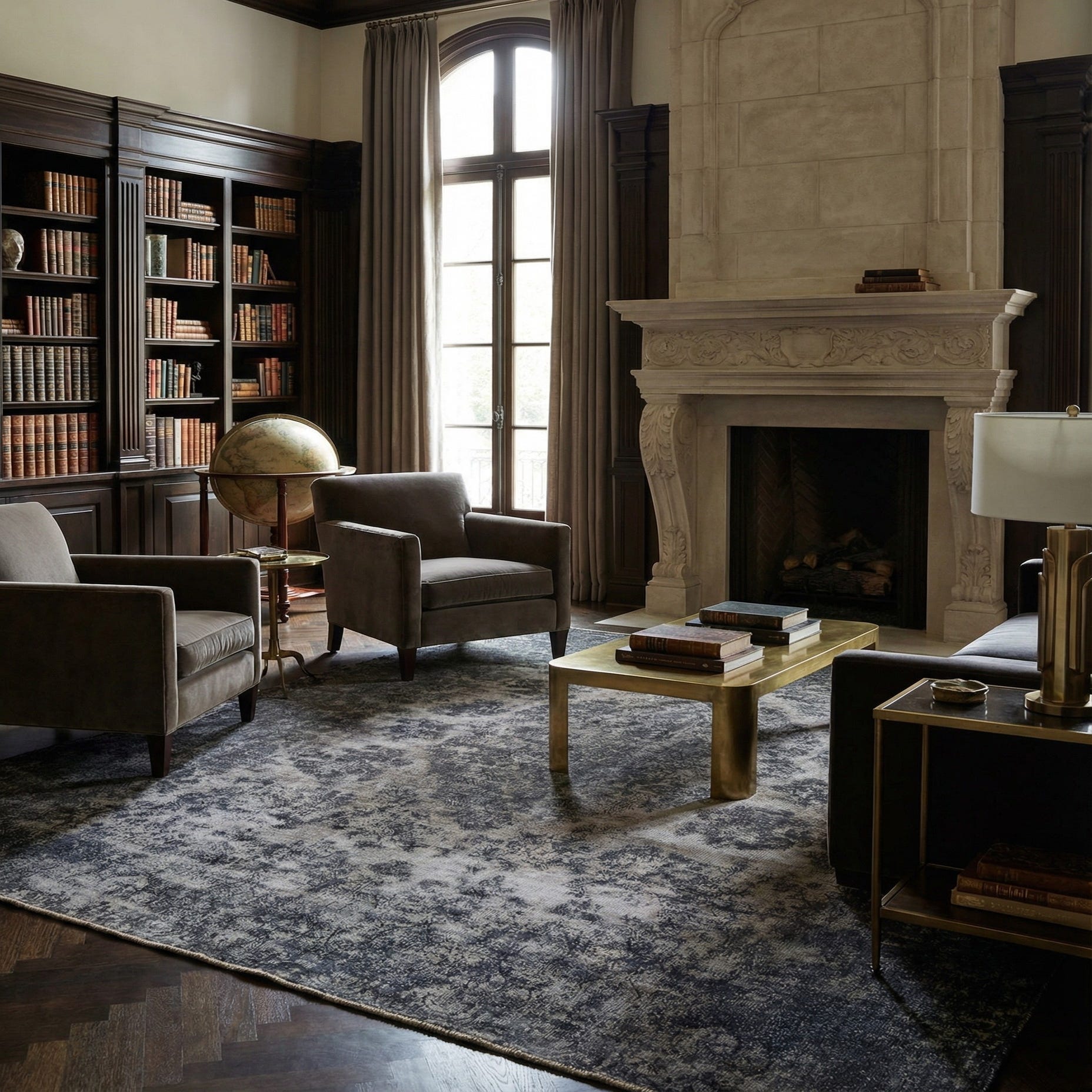 This rug's muted grey palette and timeless design make it well-suited for a variety of interior design scenarios. It would anchor and enhance the elegance of a traditional living room or dining area, as well as provide a contrasting backdrop for contemporary furniture. Its classic appeal also enables it to serve as a tasteful addition in a transitional-style office space, where it can underpin the design with a sense of history and depth.