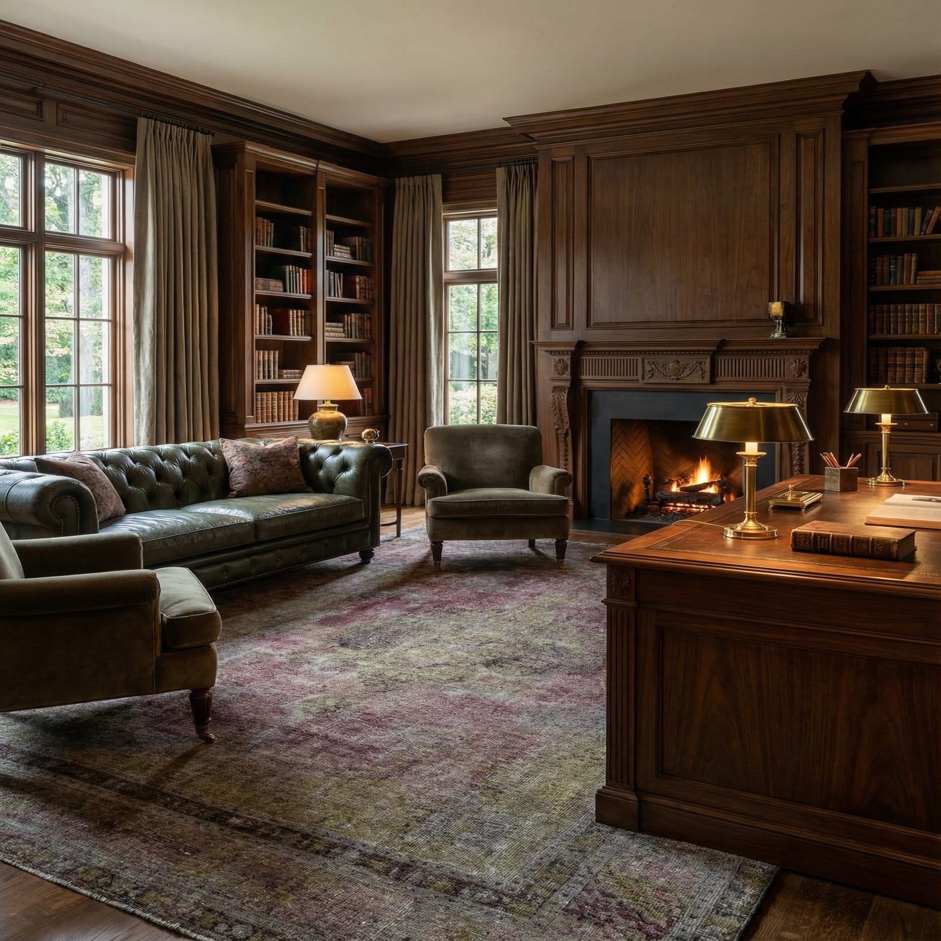 This wool rug's natural durability and the restrained color scheme suggest it would work well in a formal living room, a grandiose dining area, or an upscale master suite. Pairing it with natural wood furniture or rich leather upholstery would further accentuate its timeless character.