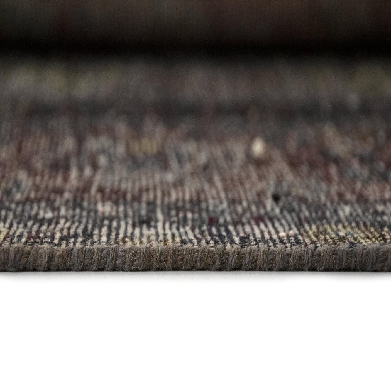 Primary color is Grey. Colors in this rug include: Grey, Brown, Green, Yellow.