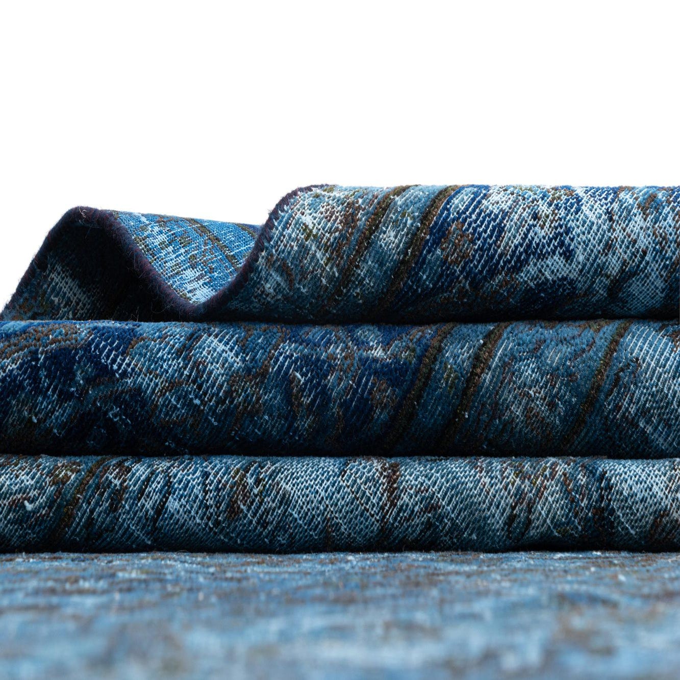 Part of the Vintage Royal collection, this 9x12 rug is handcrafted from 100% wool, offering a durable and luxurious feel underfoot. The design showcases a refined distressed look that emulates the character of a time-honored heirloom. The rug's background is a versatile grey, overlaid with intricate traditional motifs in shades of blue, light blue, and subtle touches of brown, providing depth and sophistication to the pattern.