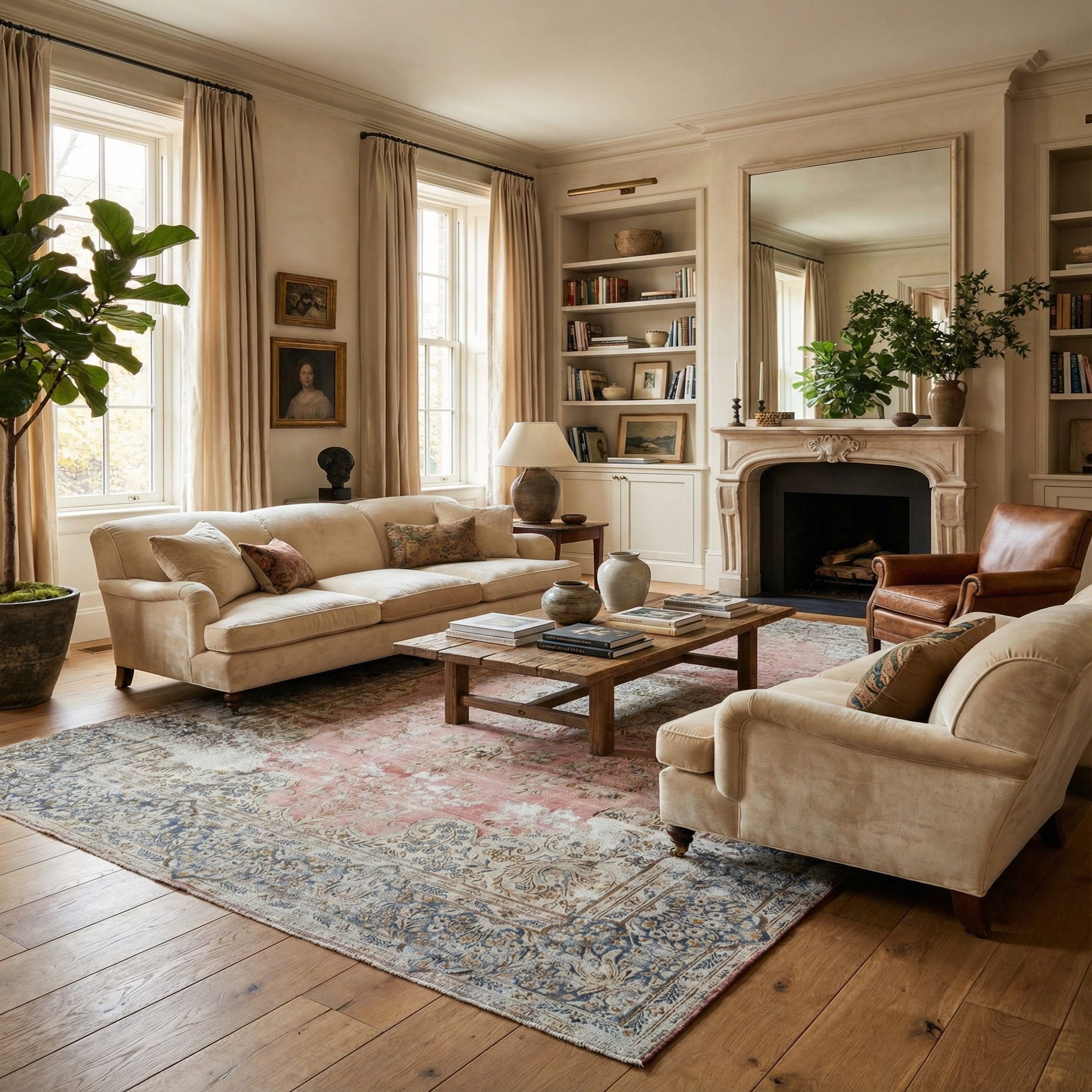 The rug's texture is enriched by the natural qualities of wool, providing a soft and inviting surface. The thoughtful use of color and the distressed look give this rug a character that can seamlessly integrate into both contemporary and traditional decors. Its sizable dimensions make it an excellent choice for anchoring furniture in living rooms, grounding dining areas, or adding a sophisticated touch to spacious bedrooms. The Vintage Royal rug can be effortlessly paired with natural wood elements, rich leather furniture, or metallic accents to enhance the overall elegance of any room.