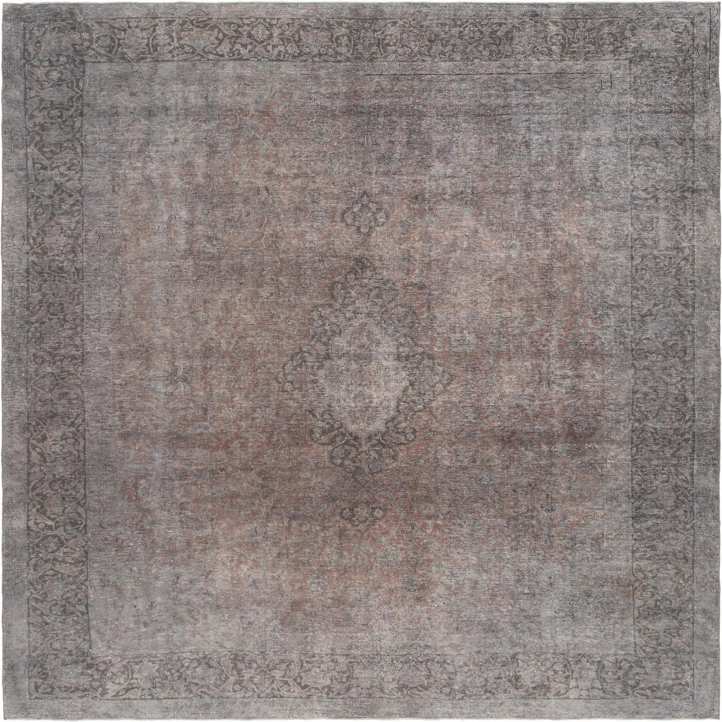 A 9x12 rectangular grey Persian wool rug with a distressed traditional medallion pattern and ornate border.
