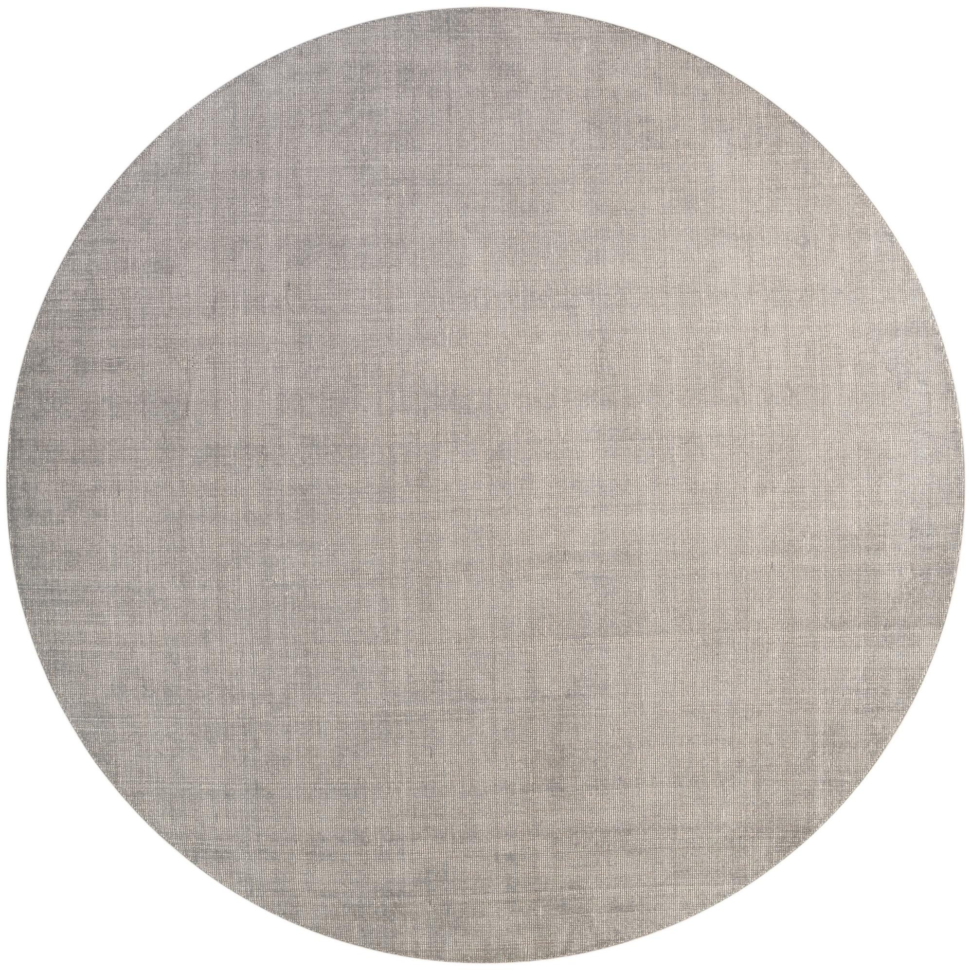 A large 13' 1 round gray modern wool rug with a subtle textured pile, perfect for an indoor living space.