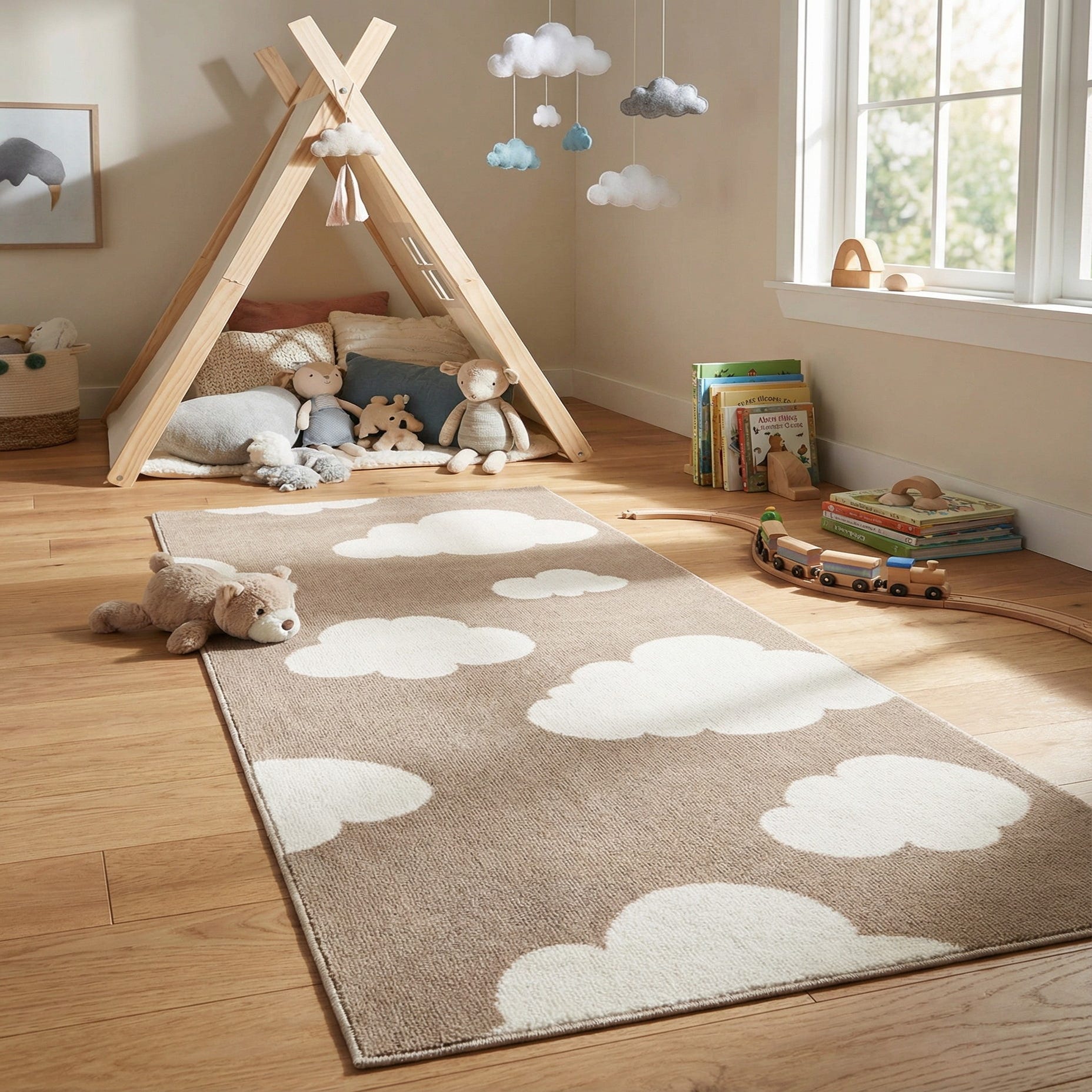 Primary color is Hazelnut Beige. Colors in this rug include: Hazelnut Beige, Ivory.