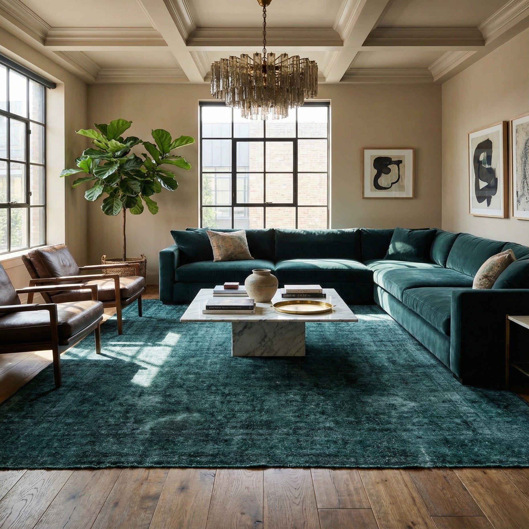 The Ultra Vintage rug's robust color palette and versatile style make it an ideal choice for a variety of interior design scenarios. It would serve as a sophisticated foundation in a stately library, add a layer of refined warmth to a formal living room, or bring a sense of grounding to a spacious and minimalist bedroom. The rug's simple yet impactful design ensures compatibility with both dark wood furnishings and more modern, metallic accents.