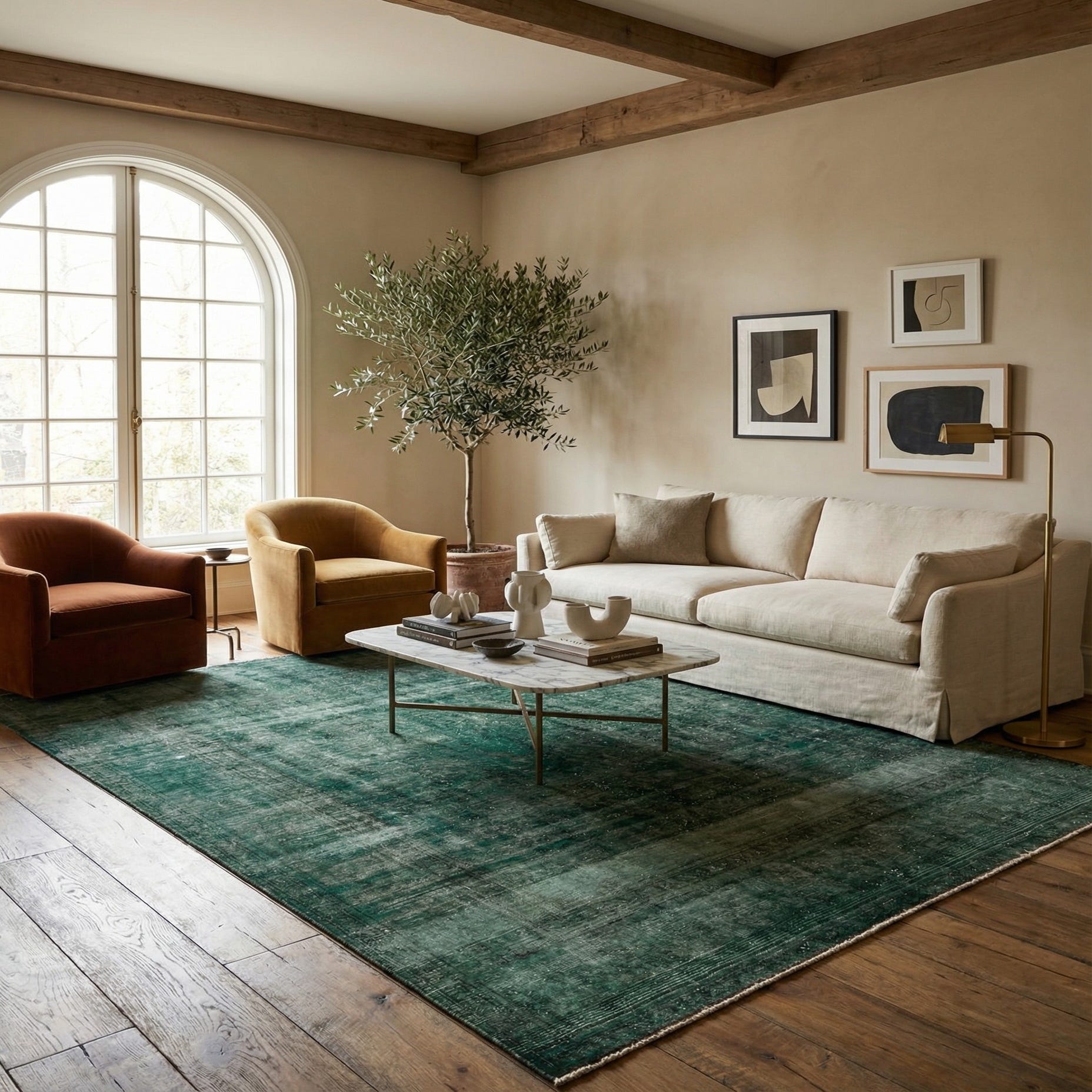 Primary color is Hunter Green. Colors in this rug include: Hunter Green, Black, Ivory.
