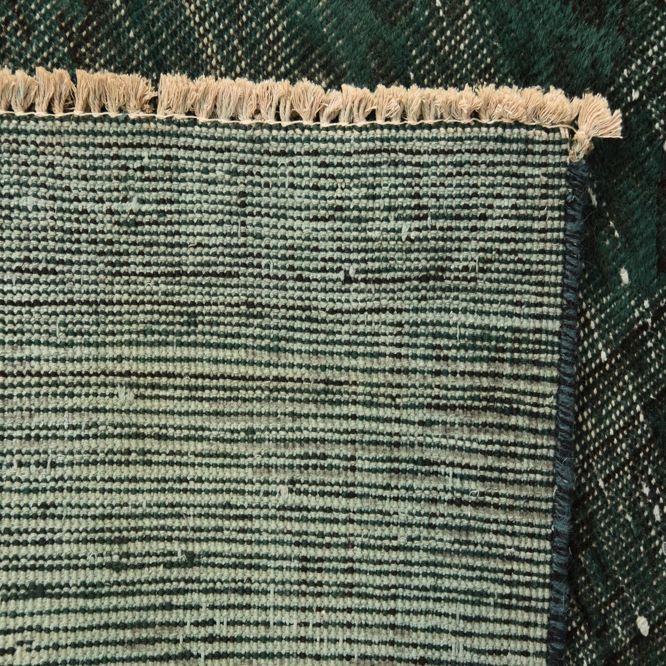 This Ultra Vintage collection rug is hand-knotted of 100% wool, ensuring durability and a soft, plush feel underfoot. The generous 10x13 size makes it a suitable anchor for larger living spaces or dining areas. The design features a deep hunter green background with nuanced variations and subtle distressing that give it a rich, lived-in look. Accents in black and ivory add depth and intricacy to the rug's pattern, while thoughtful placement of these hues creates a balanced and harmonious aesthetic.