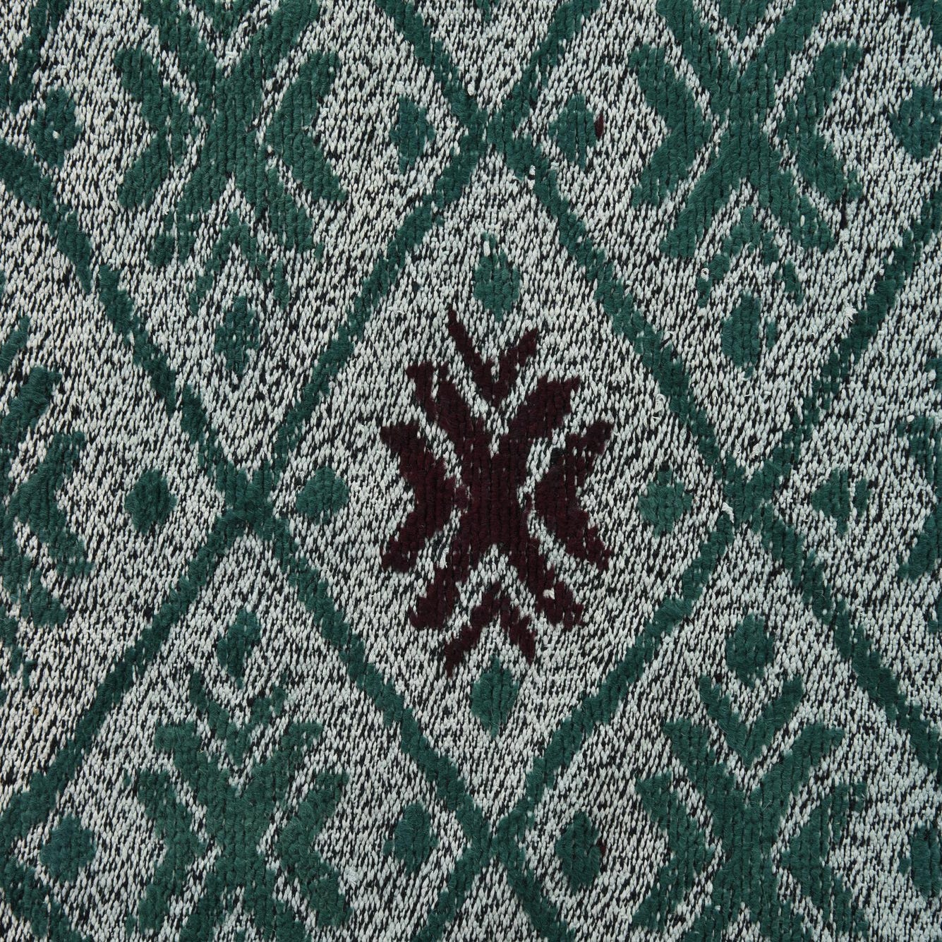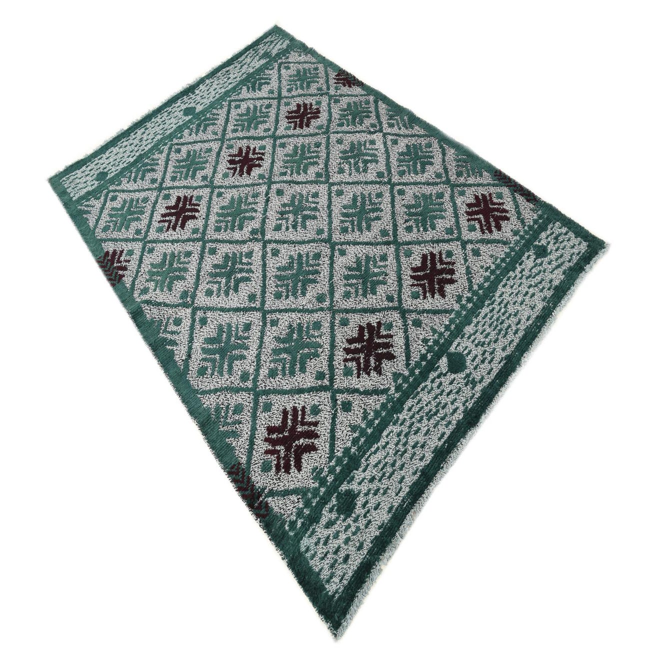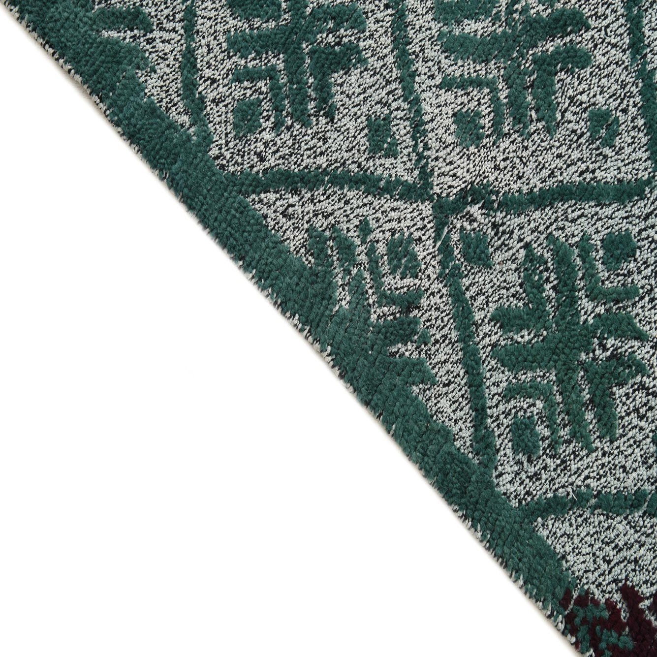 Primary color is Hunter Green. Colors in this rug include: Hunter Green, Burgundy, Light Blue.
