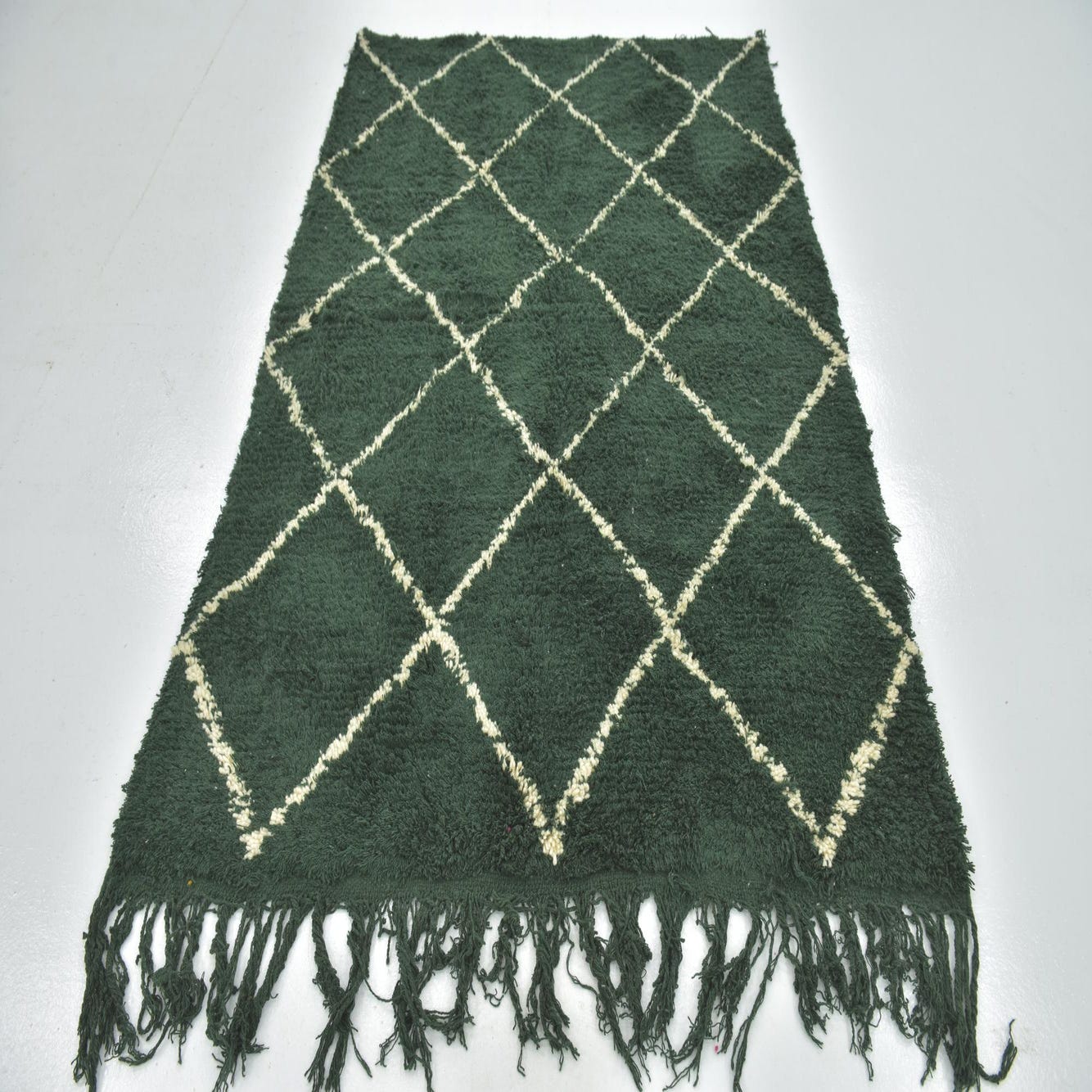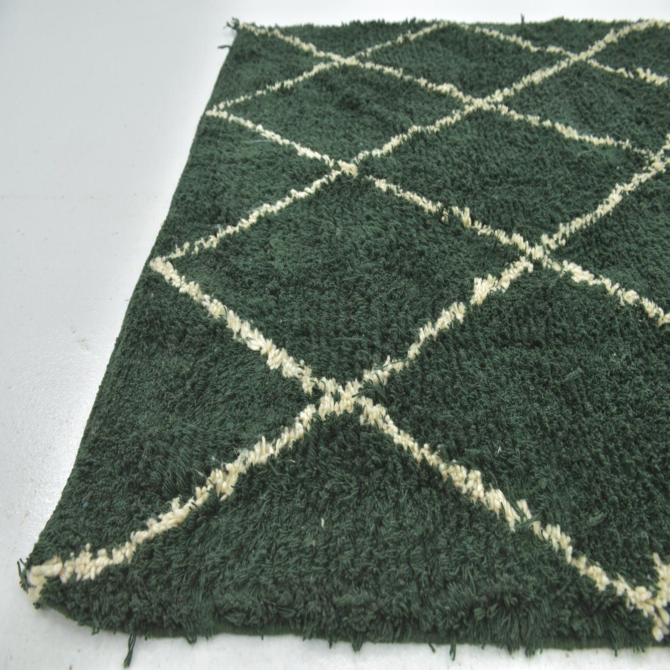 Primary color is Hunter Green. Colors in this rug include: Hunter Green, Ivory.