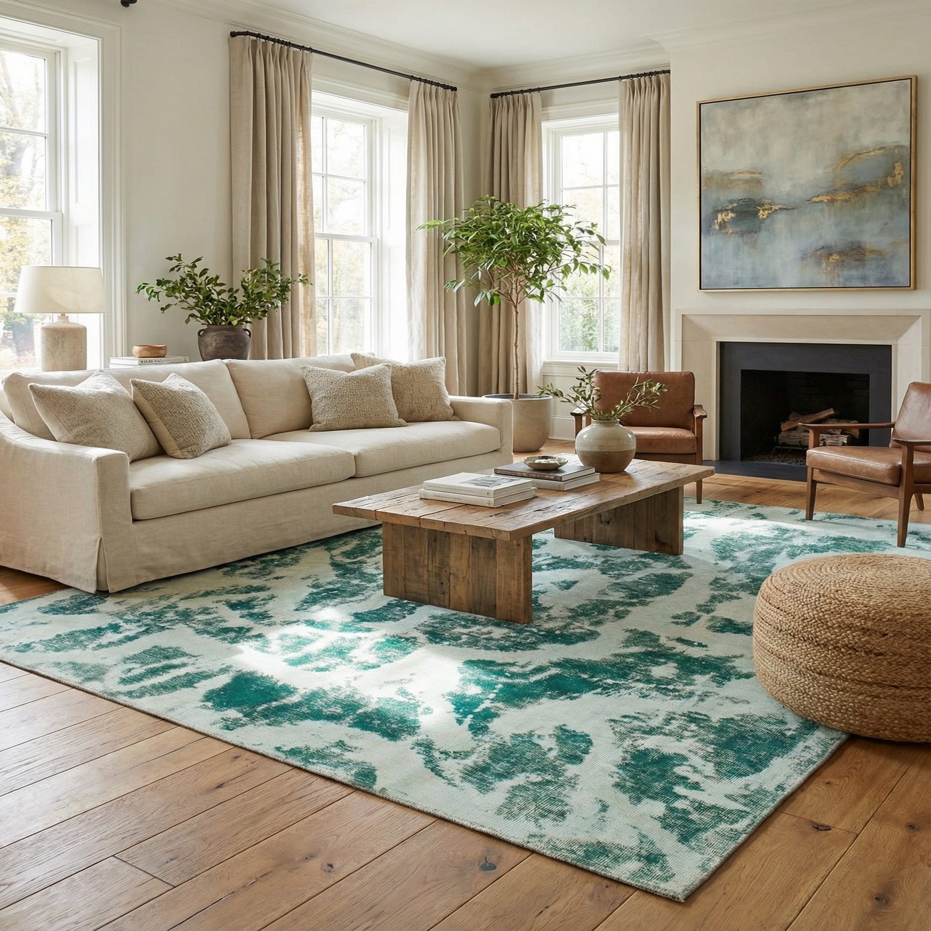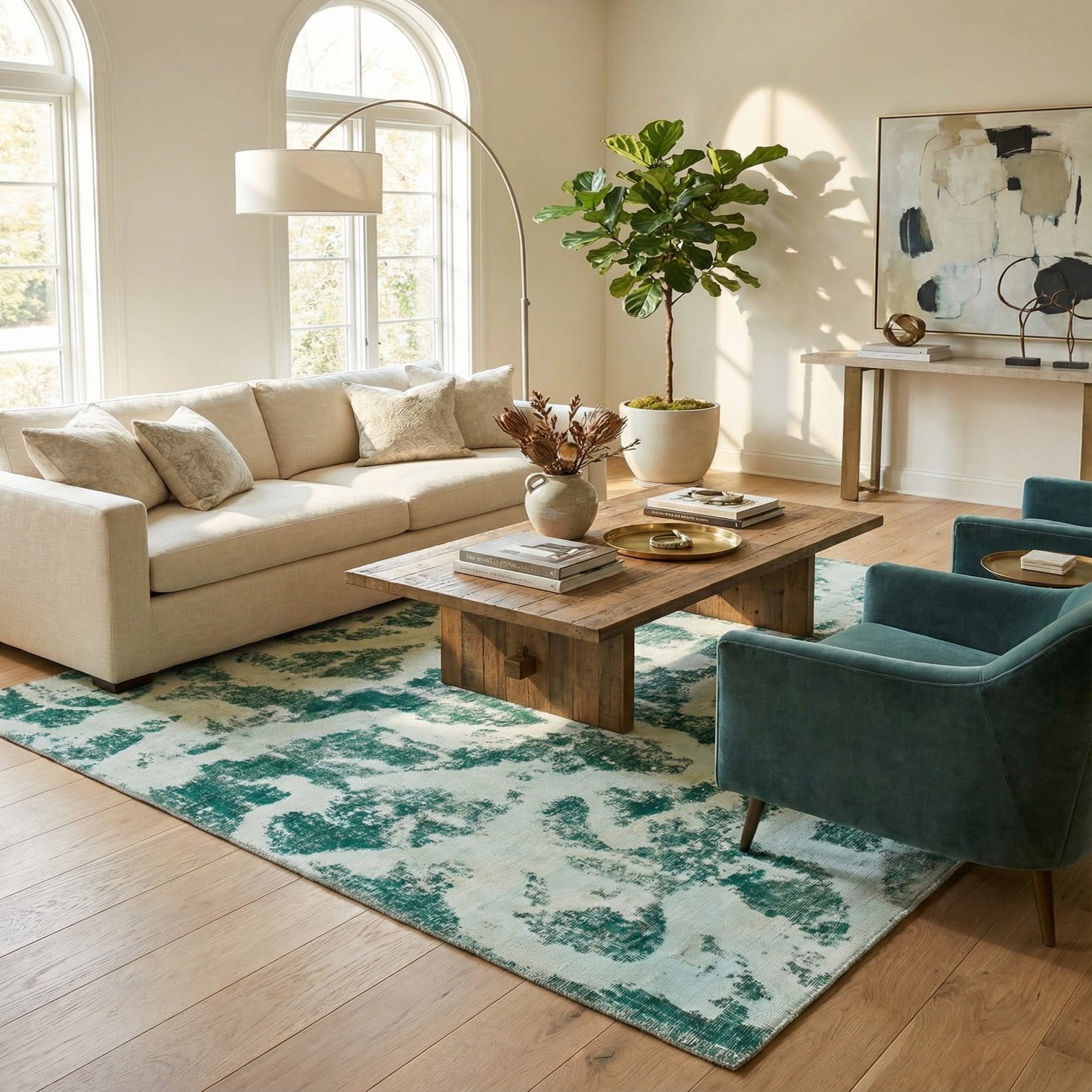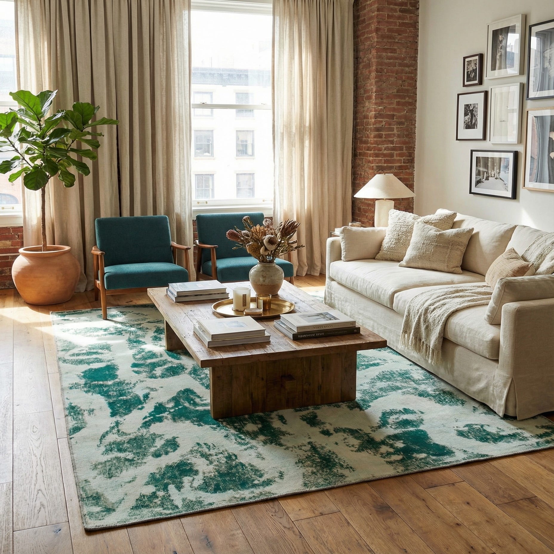 The warm green palette pairs well with natural wood tones, linen upholstery, and mixed-metal accents like brass or matte black. Place it to anchor a living room seating area, layer it under a low-profile bed for added color and texture, or use it to define a cozy home office or reading nook. Its blend of color and pattern works equally well in contemporary, transitional, or modern eclectic interiors, and it complements botanical accents and neutral walls for a balanced, inviting look.