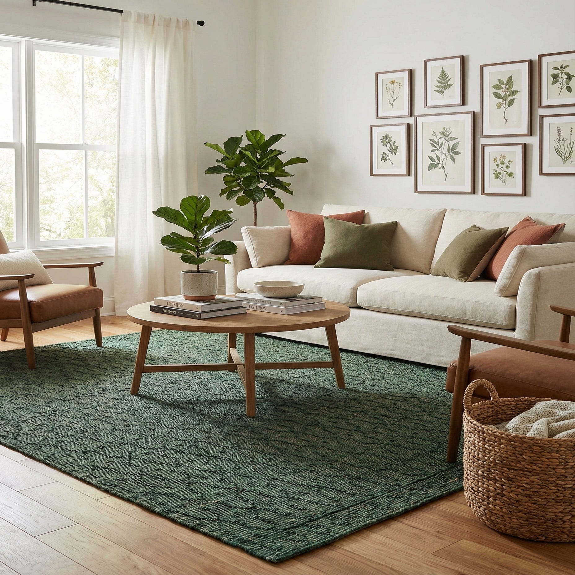 The Larsa Jute Collection presents a sophisticated 8 Ft Square rug that is hand woven from 90% jute and 10% cotton, offering durability coupled with a natural texture. The dominant hunter green background infuses a sense of depth and richness into the space it occupies. This rug features an intricate pattern that showcases the meticulous craftsmanship of its weave. Its flatweave construction ensures a low profile and contributes to its shed-free quality, making it a practical choice for high-traffic areas.