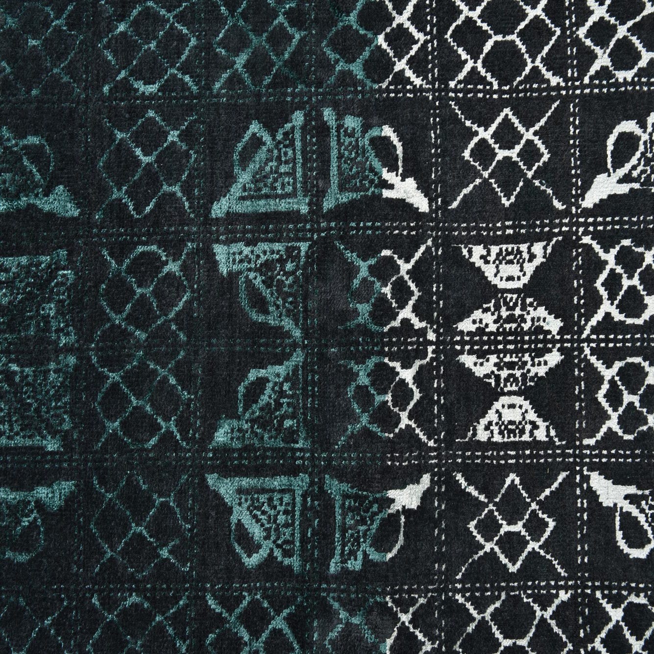 A rectangular 8x10 Darya rug in green and black with a modern oriental abstract pattern, ideal for a living room.