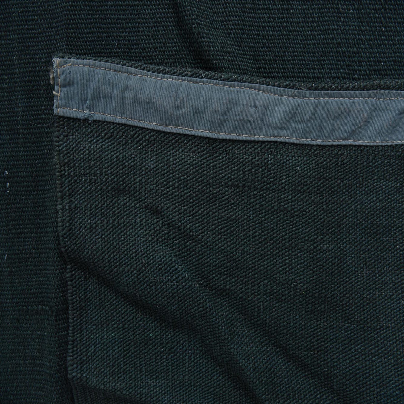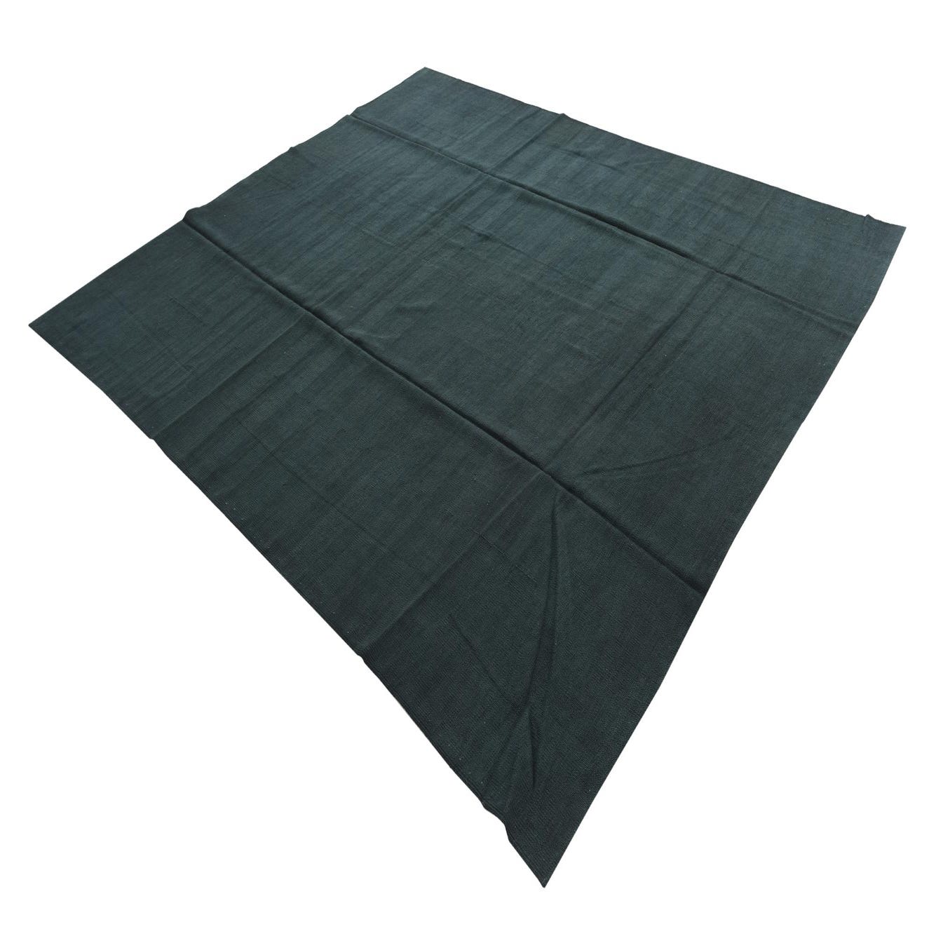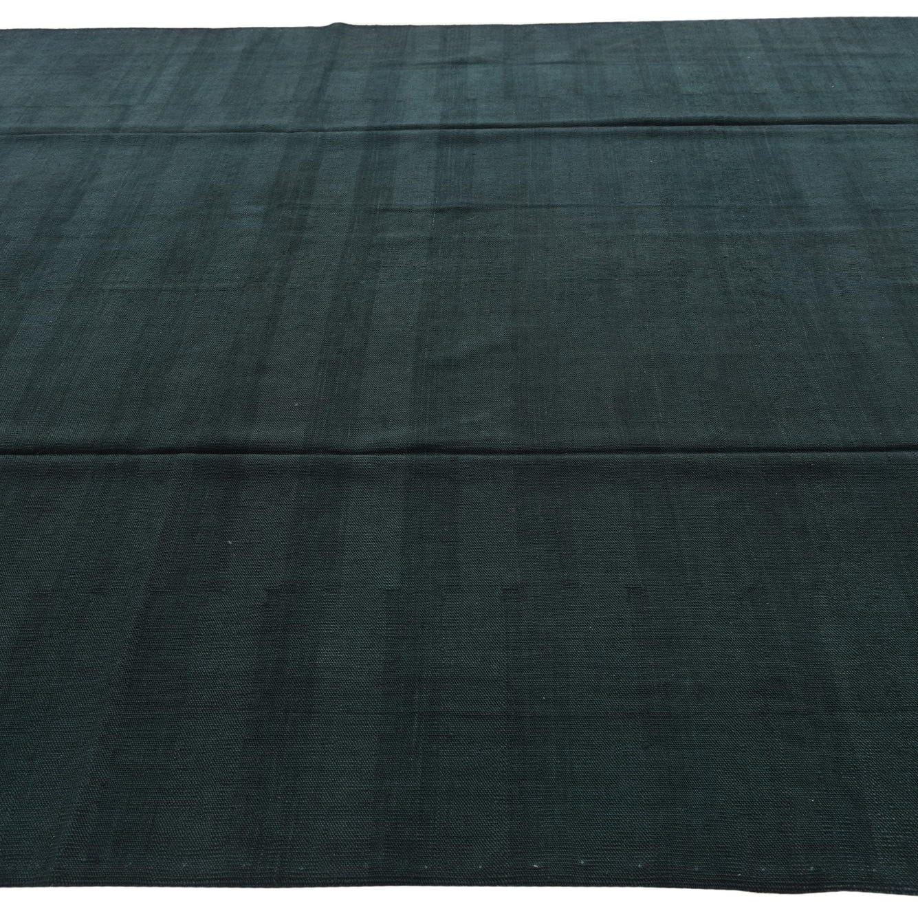 The Kilim Modern collection presents an 8x10 hand-woven rug crafted from 100% wool, offering a refined statement in floor coverings. This particular piece showcases a rich hunter green background, accented by subtle variations of green that create a minimalist yet engaging pattern. The flatweave construction delivers a smooth, low pile that lends itself to an array of interior designs, making it versatile and functional.