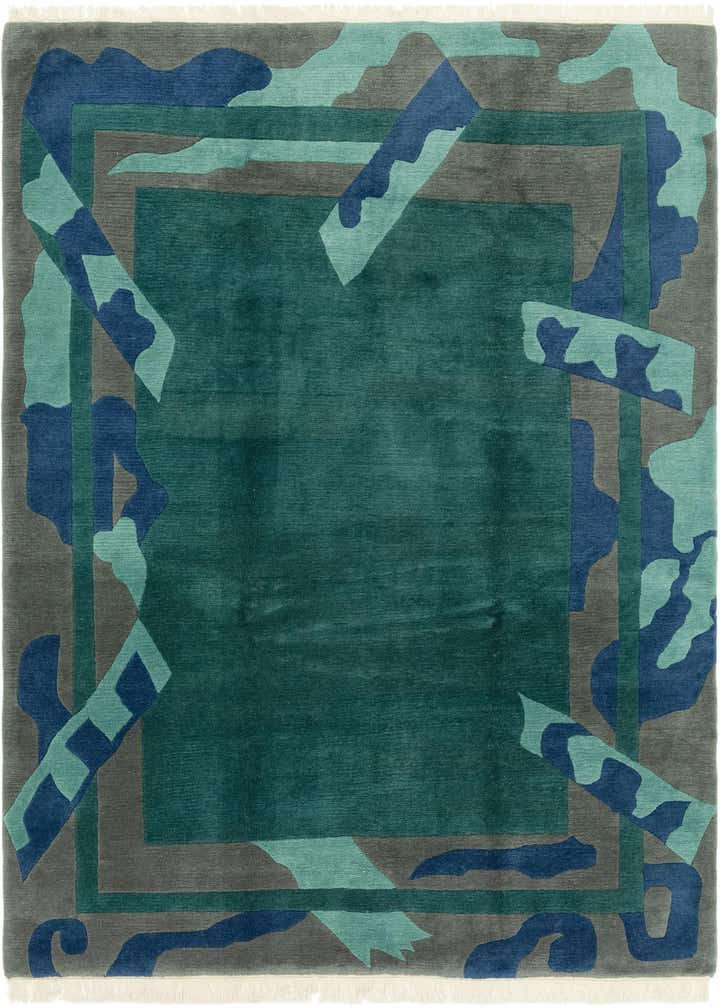 Primary color is Hunter Green. Colors in this rug include: Hunter Green, Blue, Green, Gray.
