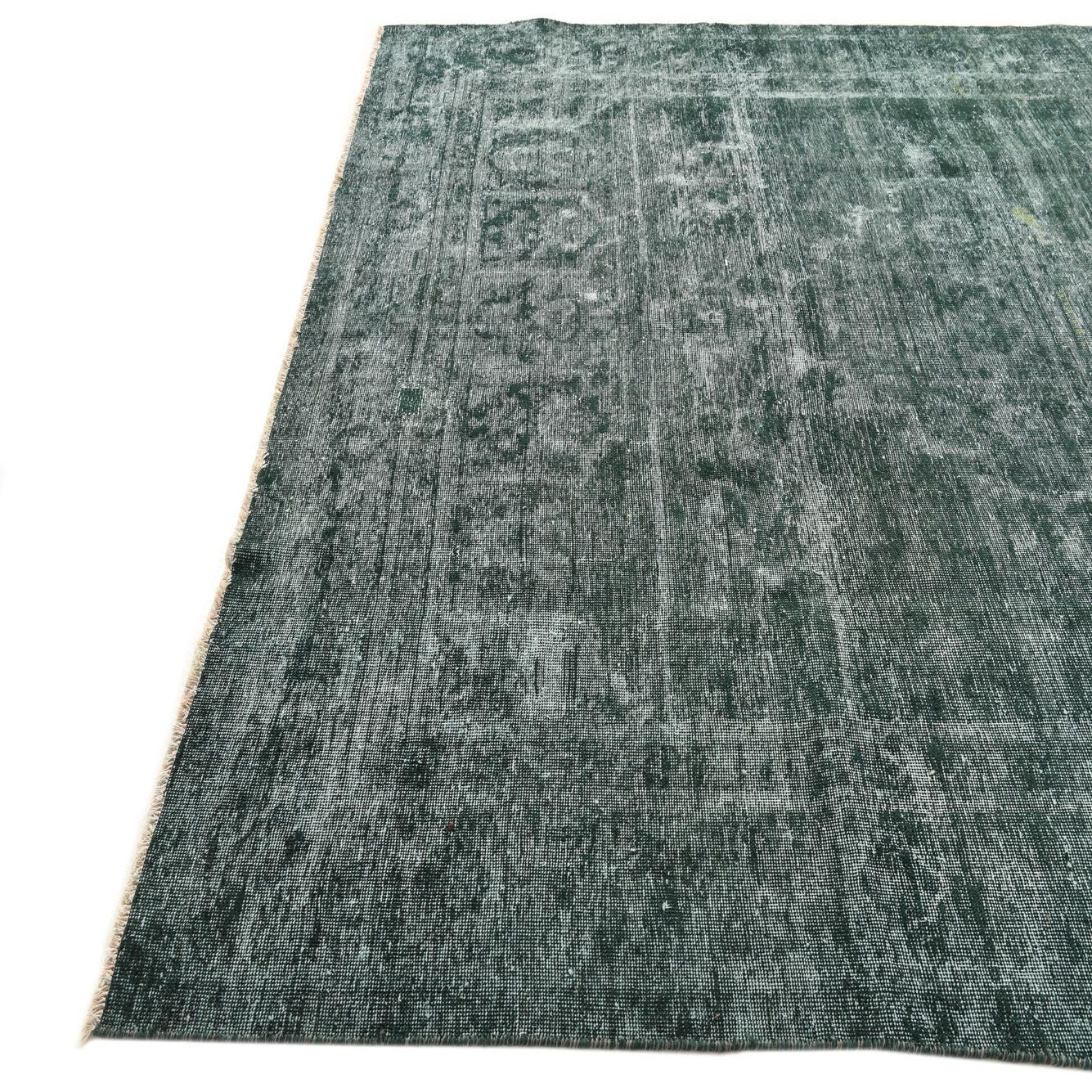 The Ultra Vintage collection represents timeless craftsmanship and design, bringing a classic aesthetic into the modern era. This hand-knotted 8x11 piece is constructed with 100% wool, offering both durability and a soft, inviting texture underfoot. Hunter Green dominates the palette, creating a rich, deep base color, while accents in lighter green and ivory lend the piece subtle contrast and complexity. The rug's pattern exhibits a traditional, weathered motif that suggests a sense of history and elegance.