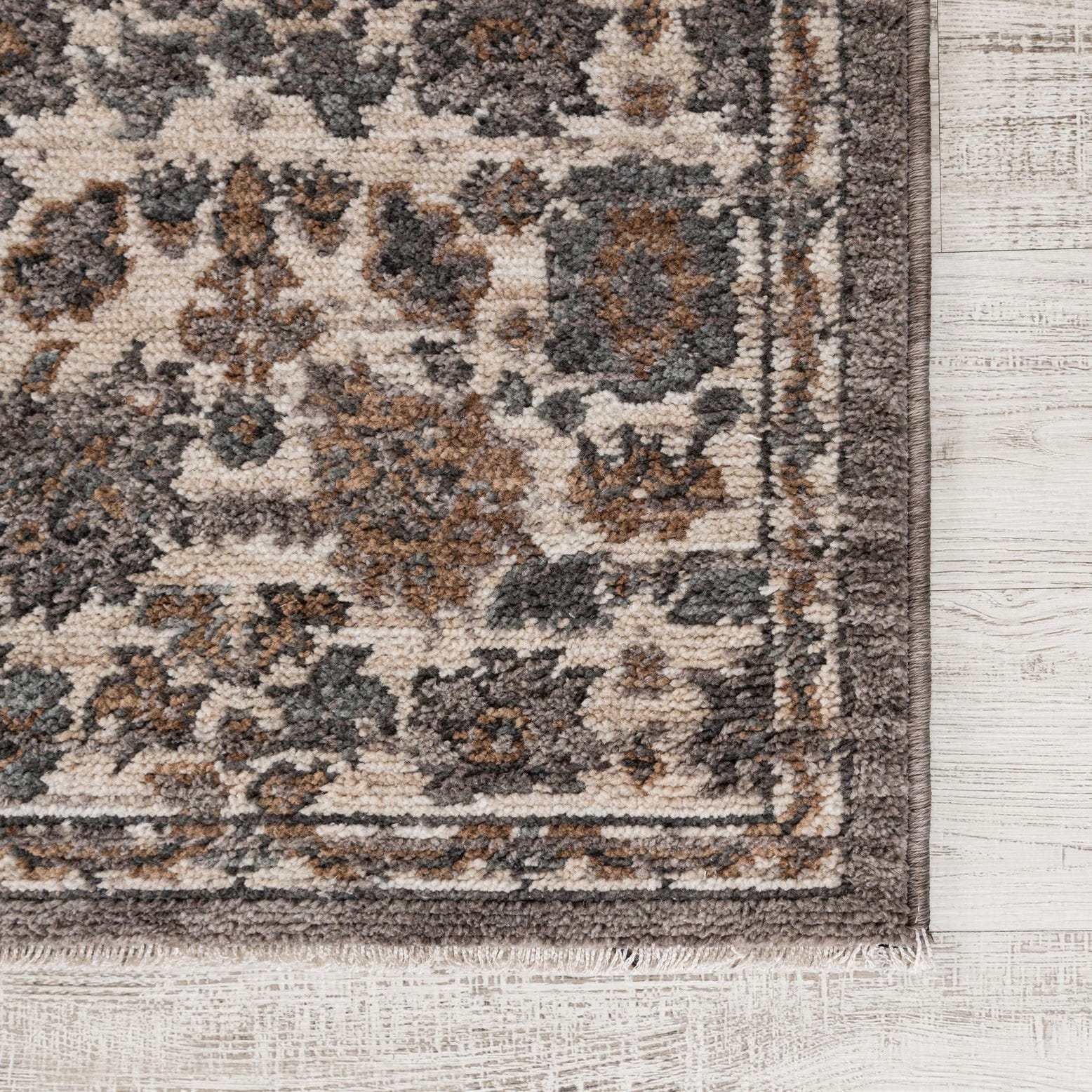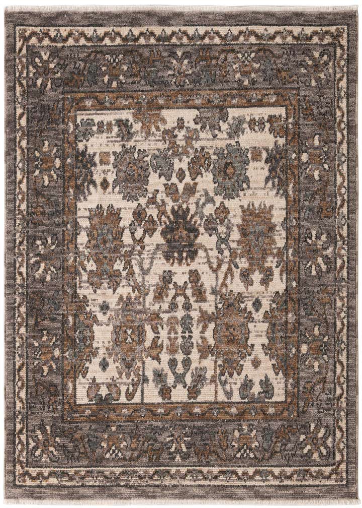 Primary color is Ivory. Colors in this rug include: Ivory, Beige, Gray, Navy Blue.