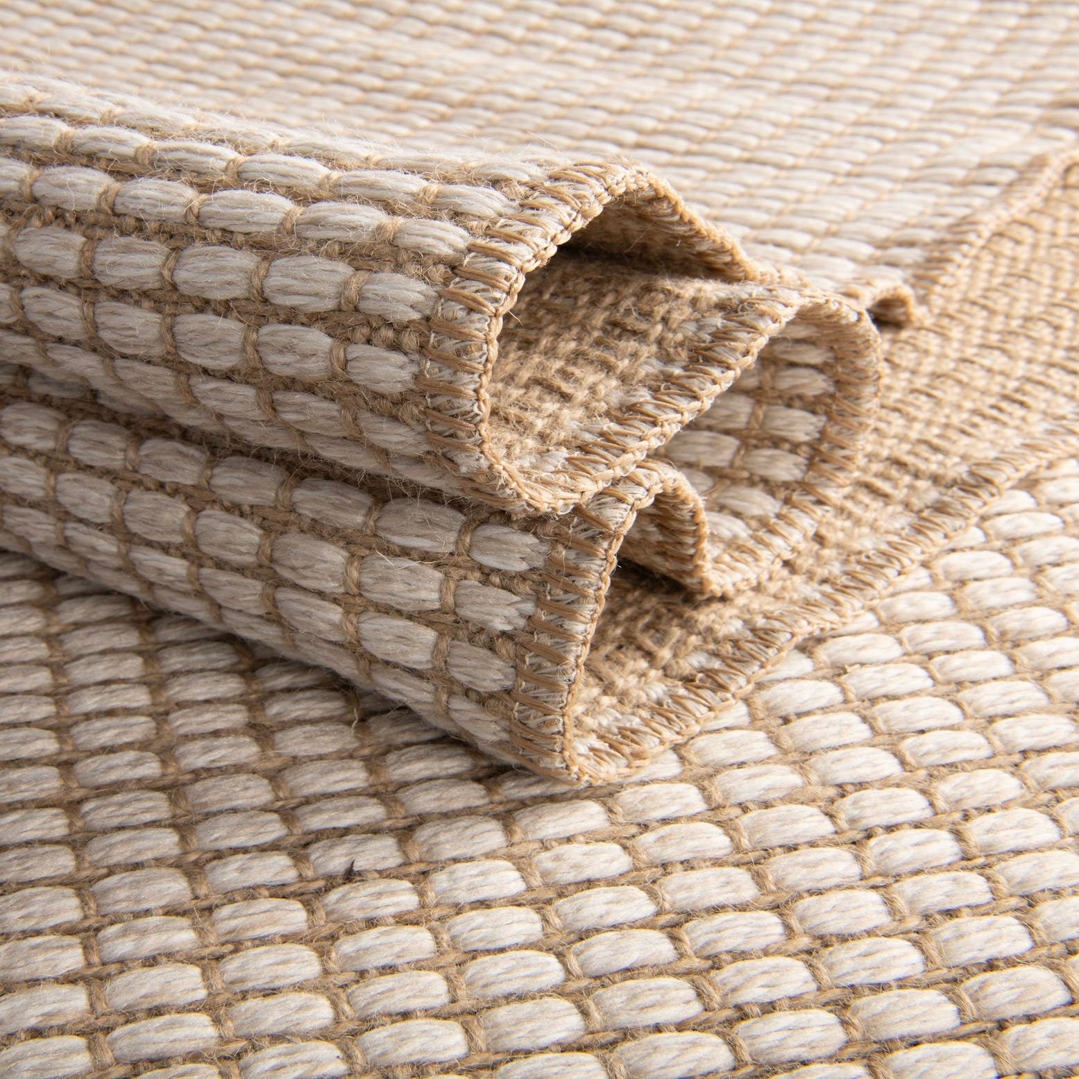 A 10 ft runner rug from the Cottage Farm collection, featuring a rustic ivory and cream textured flatweave pattern with fringed ends, ideal for a hallway.