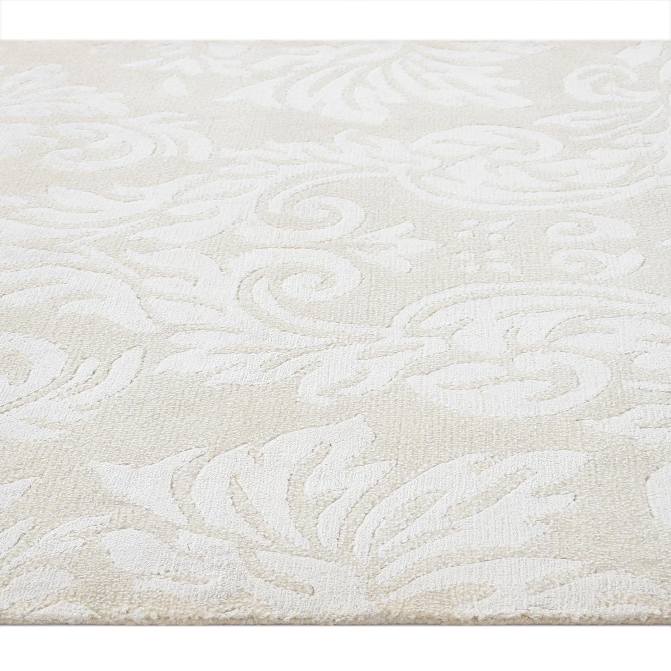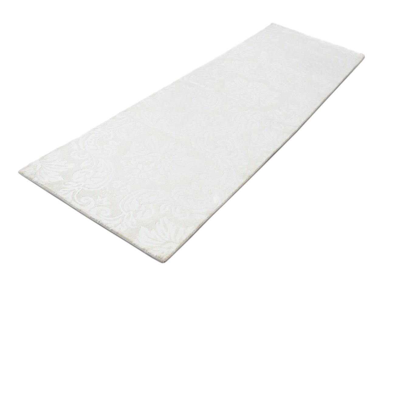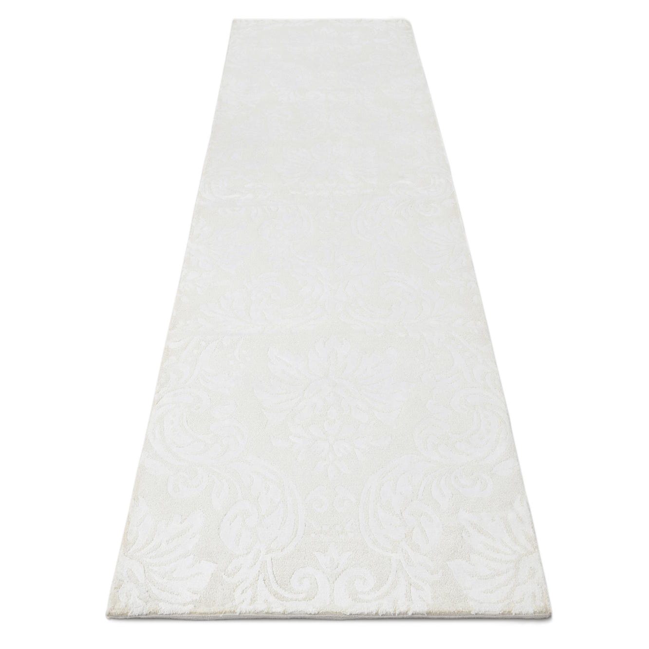 A 10 ft Darya runner rug in ivory and cream with a subtle, elegant modern oriental pattern.