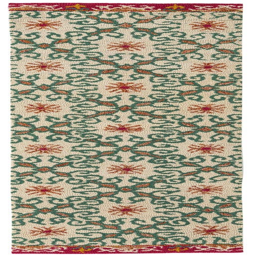 Primary color is Ivory. Colors in this rug include: Ivory, Brown, Green, Red.