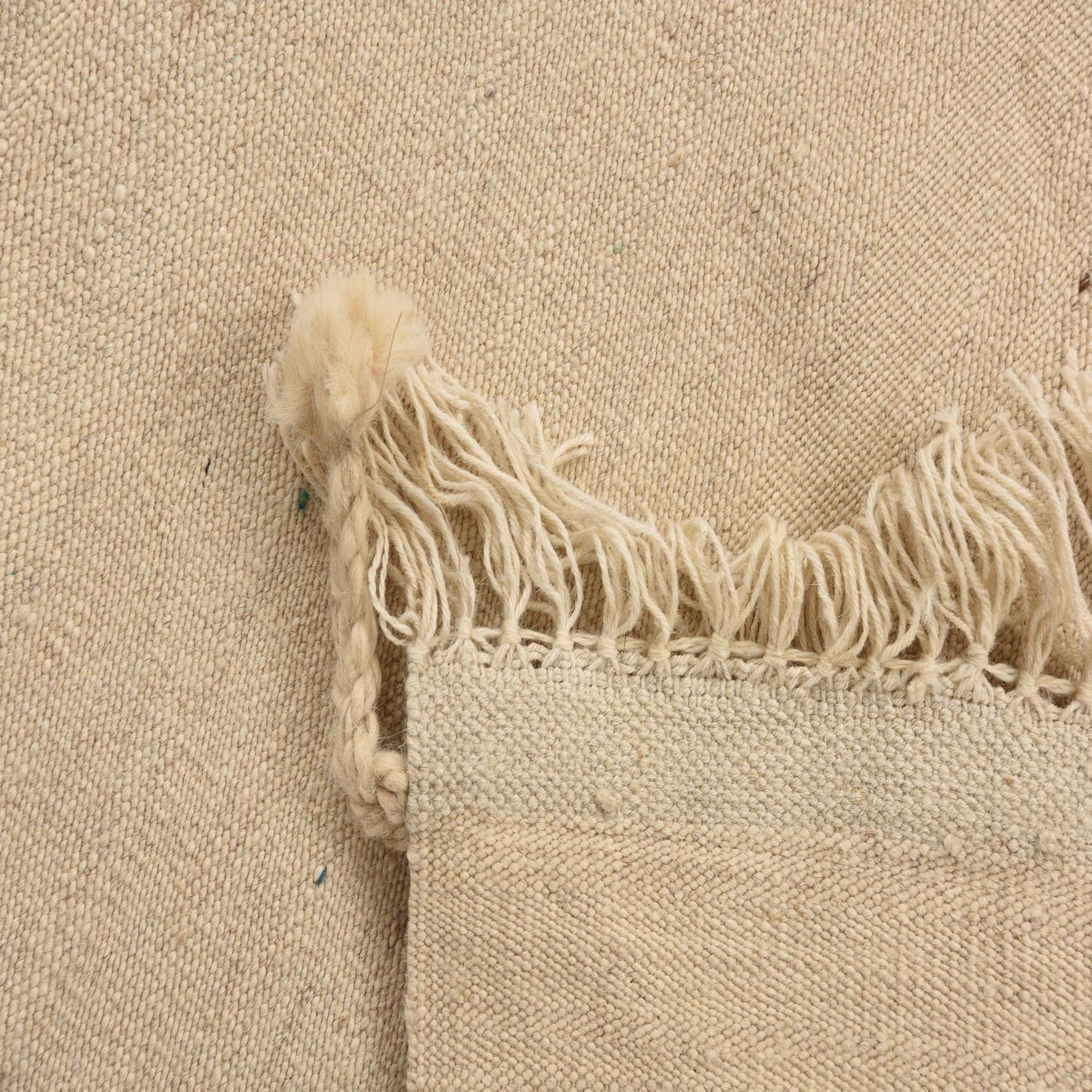A 10 ft ivory wool runner rug with a tribal diamond pattern made from braided shag lines, featuring fringed ends.
