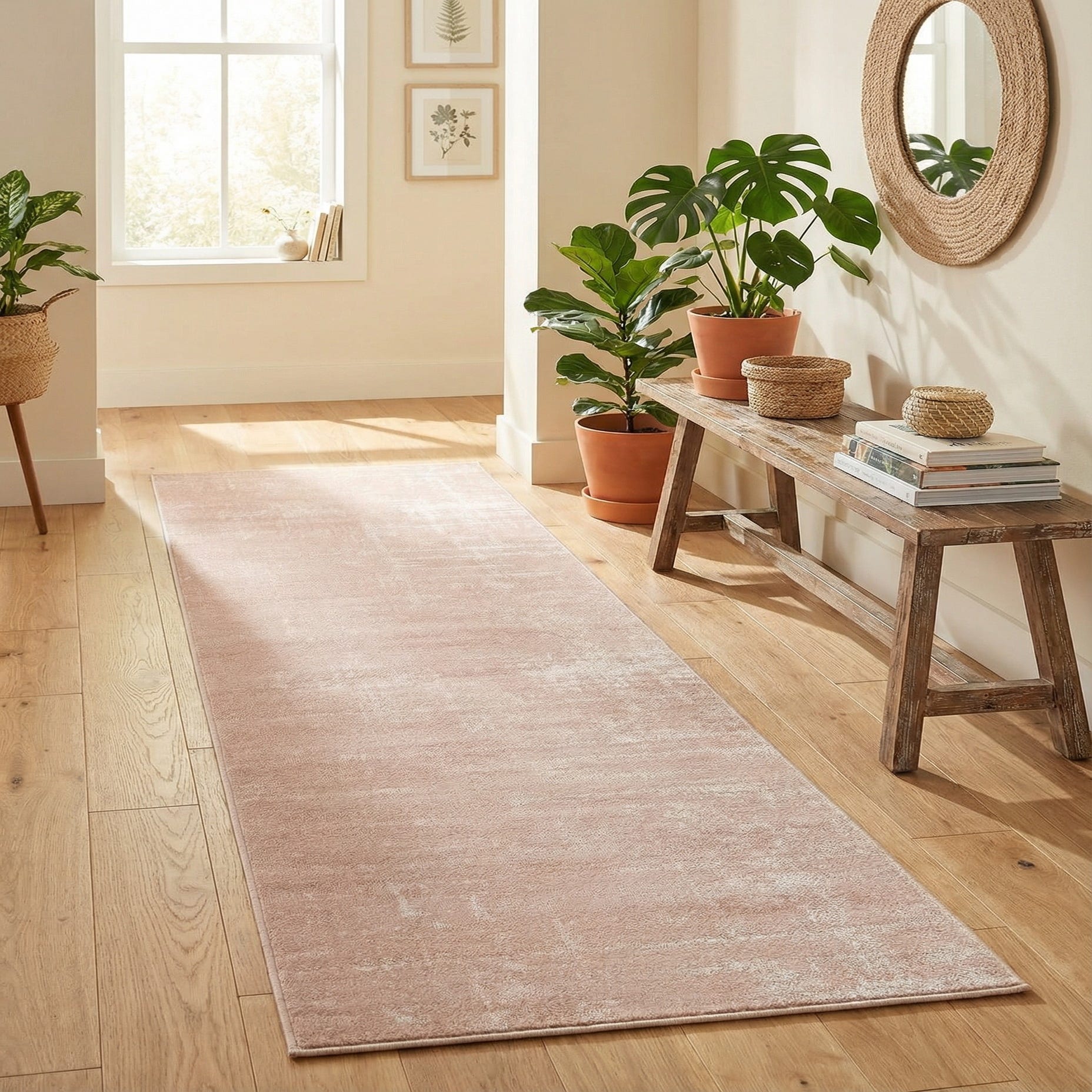 Designed for narrow circulation, it works well as a hallway or entry runner, a kitchen aisle accent, or a bedroom corridor layer. The ivory ground pairs naturally with light woods, muted pastels, and warm metals; it complements Scandinavian, contemporary, transitional, and modern farmhouse interiors. Use it to soften hard flooring, unify a neutral palette, or provide a subtle backdrop for patterned furniture and textiles.