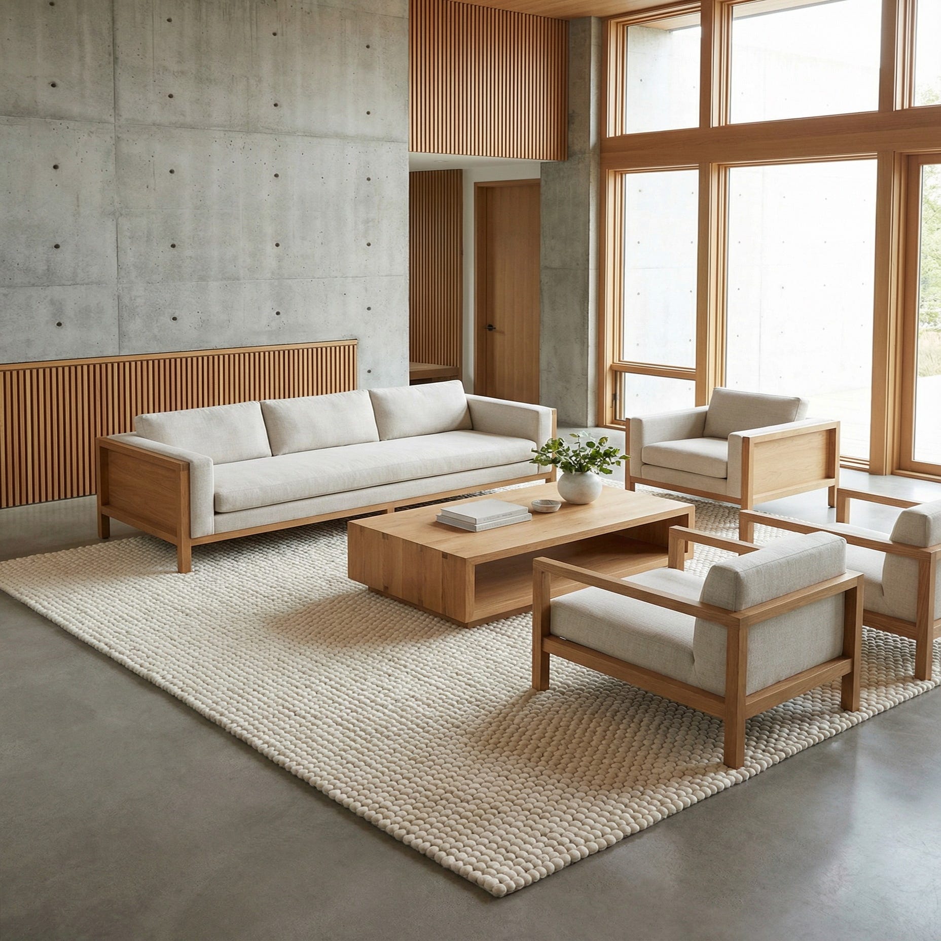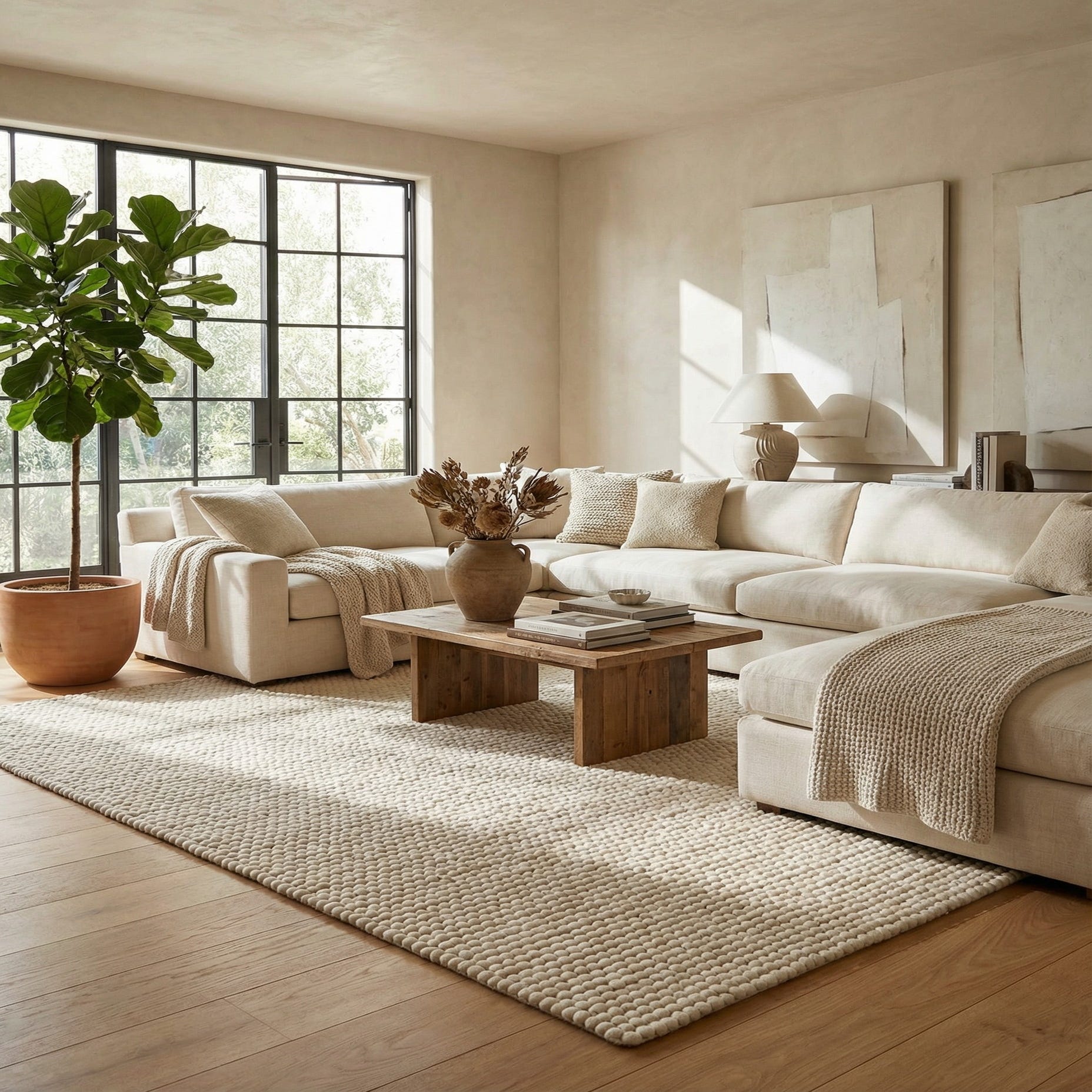 Place this rug beneath a sofa and coffee table to anchor a living room, layer it over hardwood in a bedroom for added softness, or set it in a nursery or reading nook where texture matters. It pairs well with Scandinavian and coastal interiors, as well as contemporary farmhouse schemes—think light woods, linen upholstery, and matte metal accents for a calm, cohesive result.