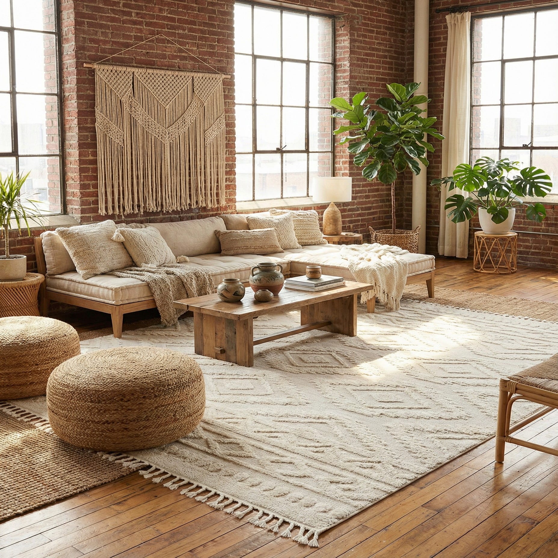 This rug would suit a range of interior design styles, especially those that favor a bohemian, coastal, or contemporary aesthetic. In living rooms, it can serve as a neutral foundation that allows more colorful or patterned decor to stand out. In bedrooms, it can add warmth and texture without competing with existing bedding and furnishings. The versatile ivory hue and engaging yet unimposing pattern ensure this rug can harmonize with a range of color palettes and design elements.