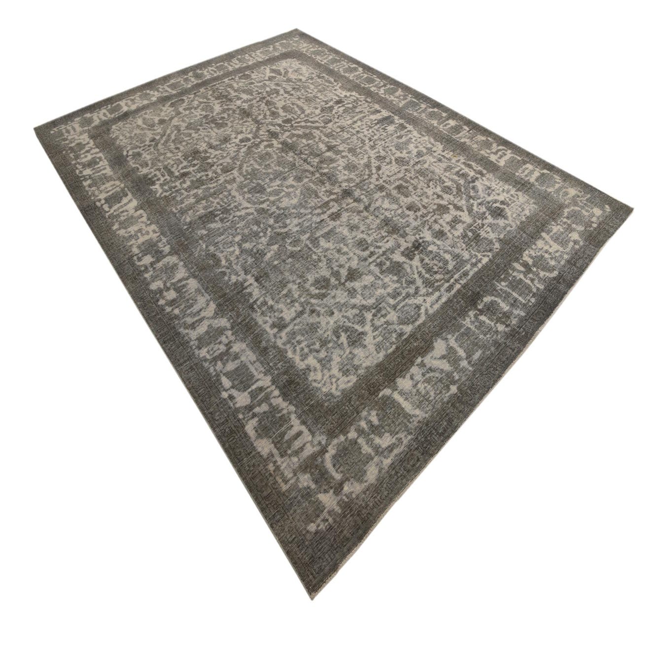 The Ultra Vintage collection presents a hand-knotted rug crafted from 100% wool, offering both durability and a luxuriously soft underfoot feel. Spanning an ample 10x13 size, this piece features an alluring pattern that harkens back to the intricate designs of antique rugs. Its ivory background gracefully supports the interplay of black and gray hues, creating a balanced visual appeal that enhances its vintage aesthetic.