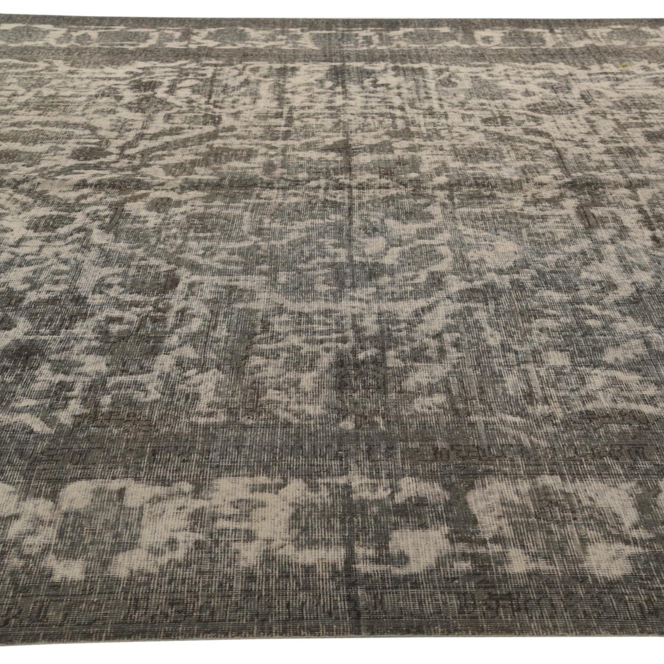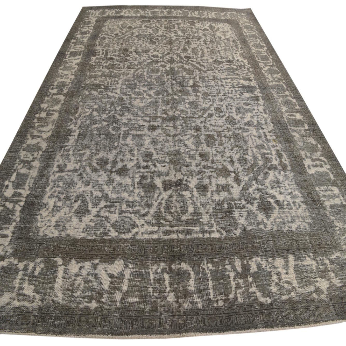 This Persian Ultra Vintage rug is an antique Persian Rug that has been washed, over-dyed, and then shaved down to a low pile. Look at the detail pictures to fully appreciate the uniqueness of this piece.