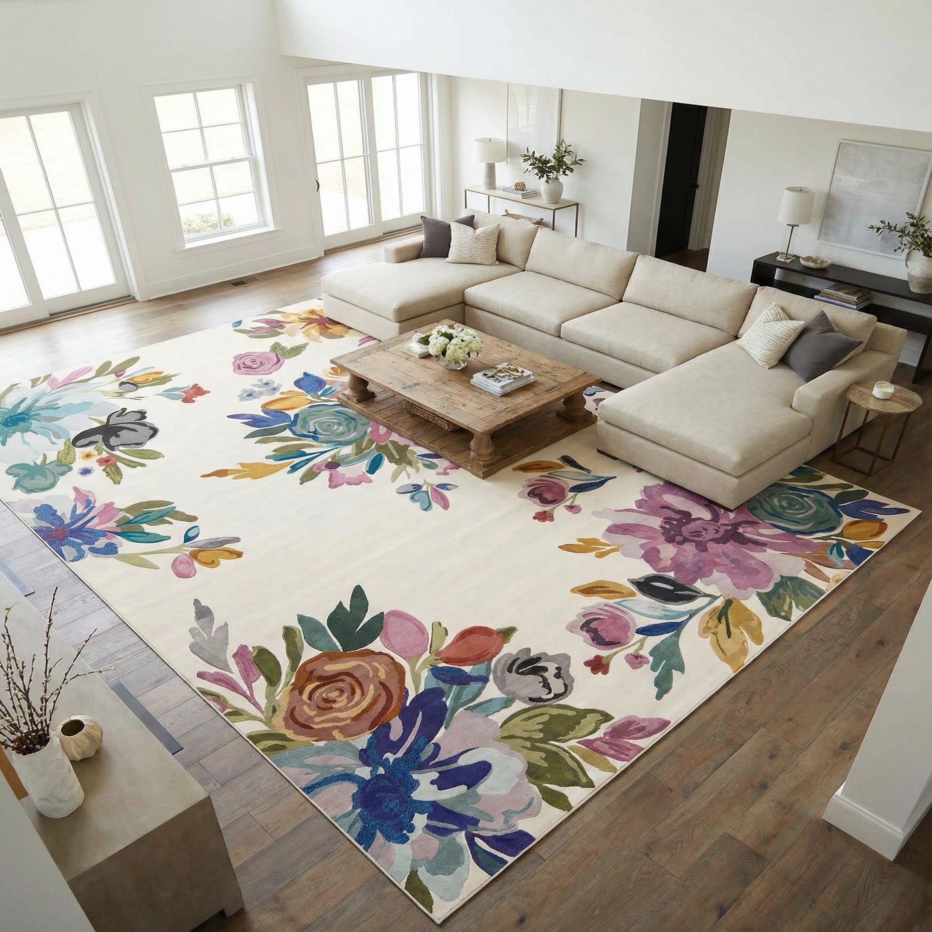 The Blossom rug is designed to be both stain-resistant and shed-free, making it a practical choice for high-traffic areas and households with pets or children. The lively and colorful pattern of this rug complements a diverse range of interiors such as contemporary, bohemian, and eclectic decor, as well as more traditional settings that would benefit from an injection of color and pattern. This piece would be particularly well-suited to living rooms, dining spaces, or large bedrooms where it can serve as an artistic centerpiece or a complement to existing decor. Its robust construction ensures it can handle the demands of everyday life while maintaining its vibrant appearance.