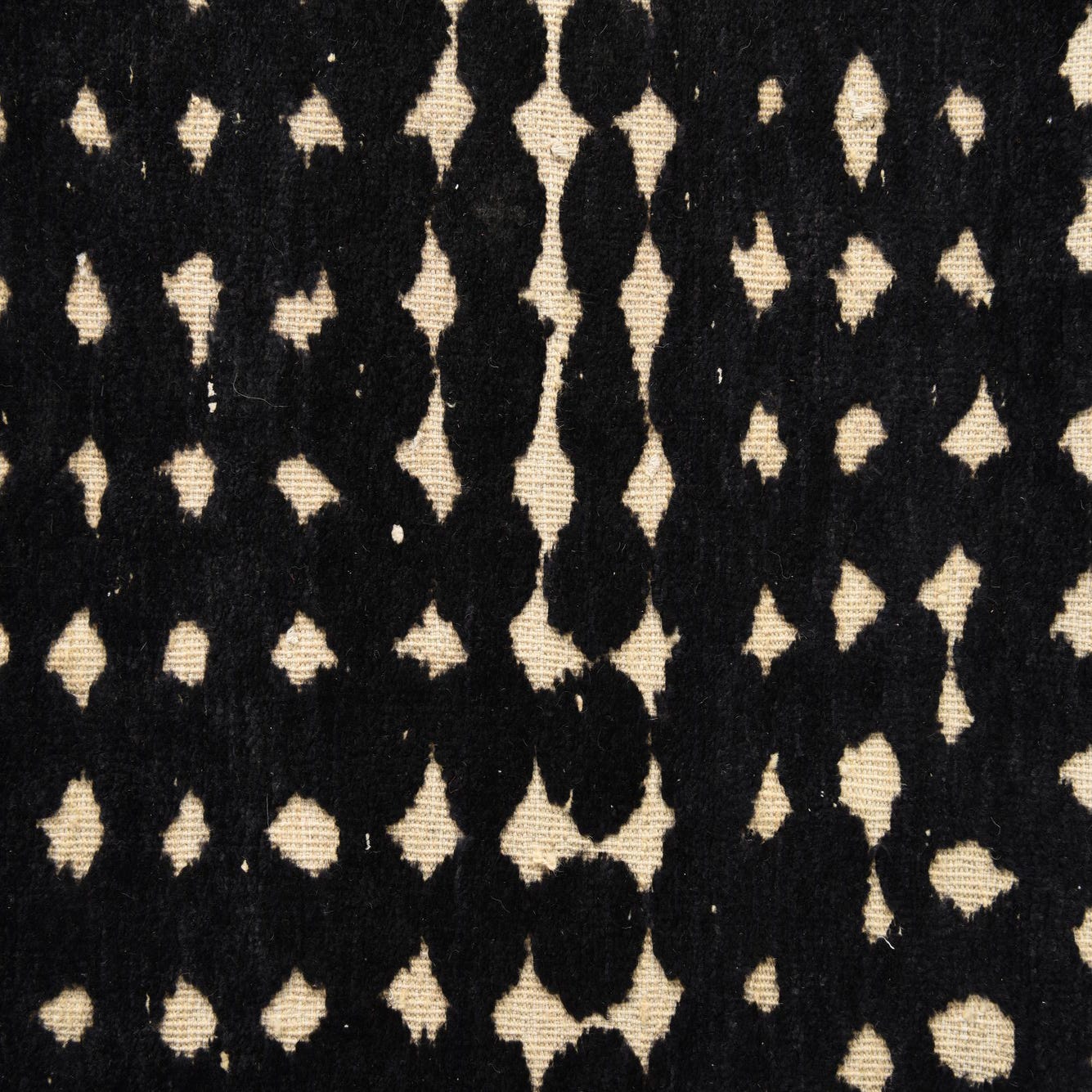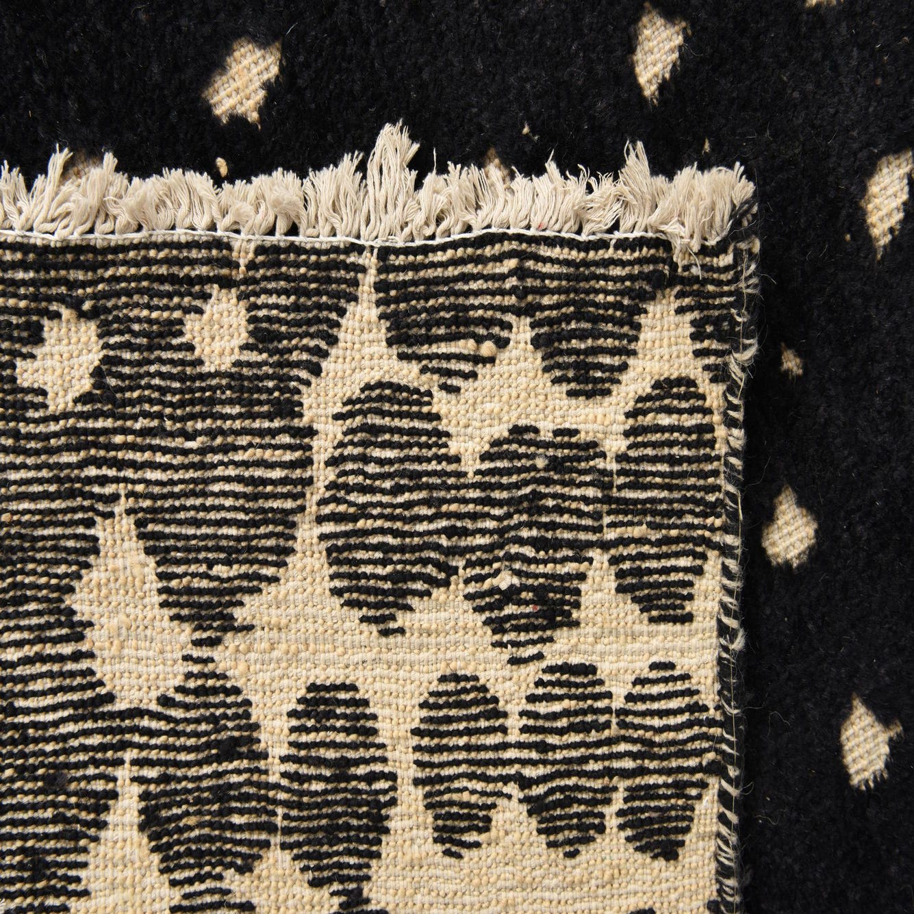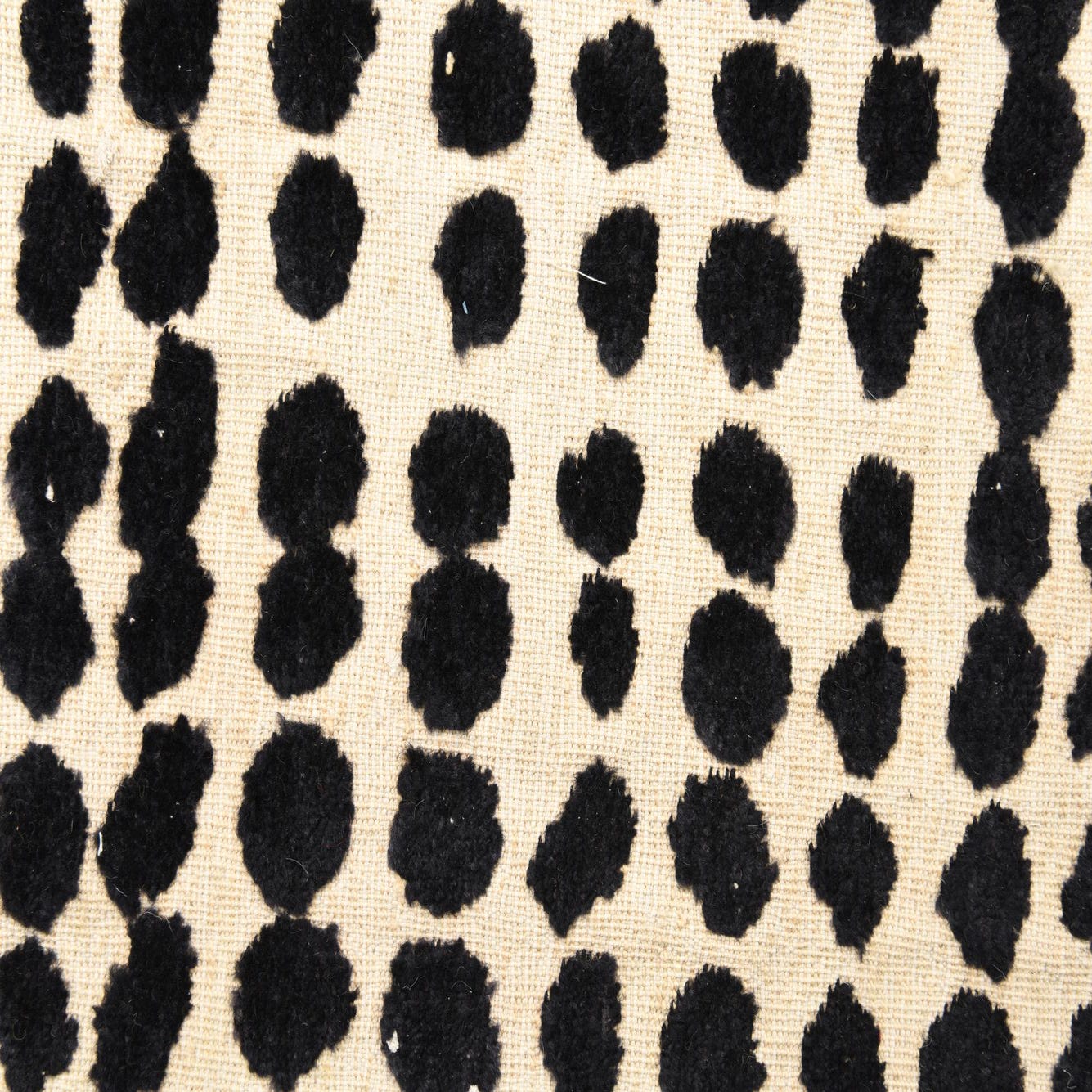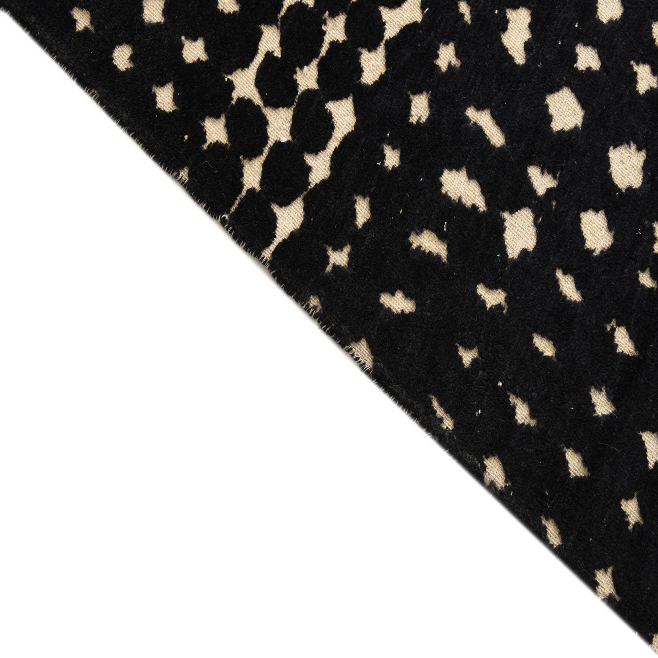 A 10x14 rectangular Darya rug with a modern black and cream dotted pattern, handmade from wool.