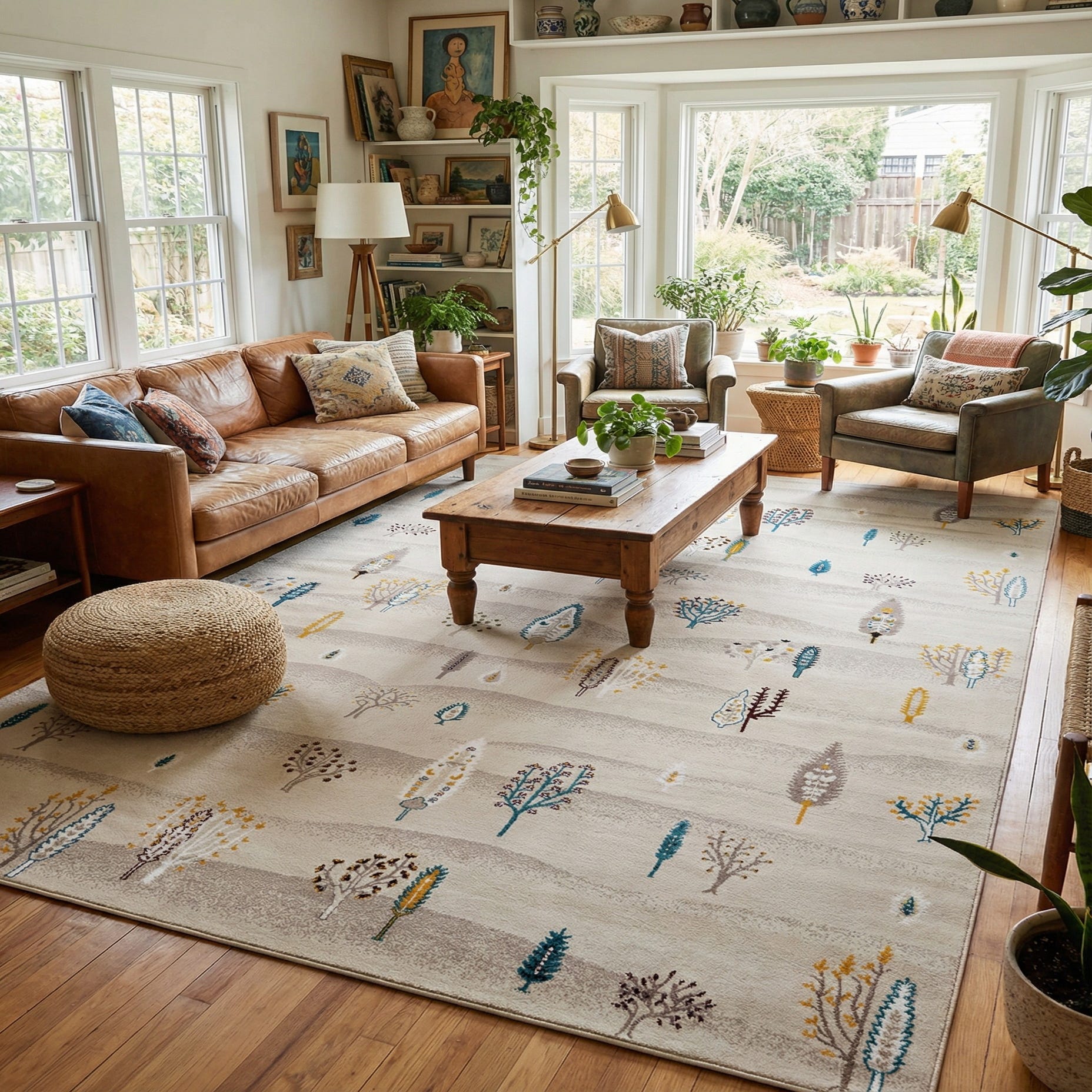 The design balances organic shapes and earthy tones, making it suitable for a variety of interior design scenarios. It can seamlessly integrate into a casual coastal aesthetic, complement a contemporary space with its clean lines, or bring warmth to a minimalist environment with its subtle pop of colors.